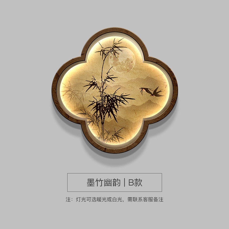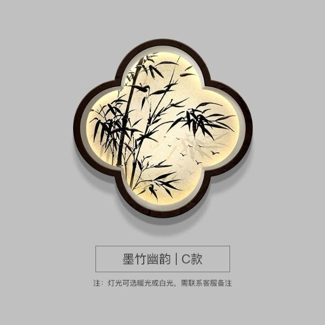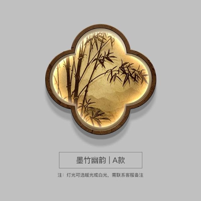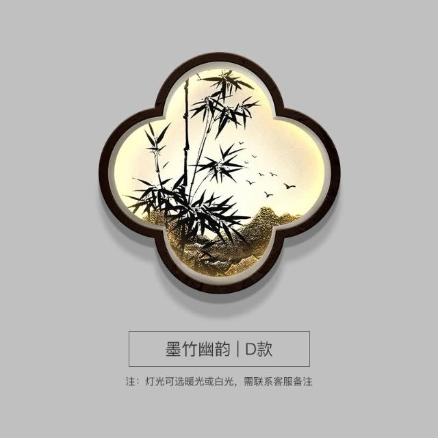 木槿衣坊 新中式玄關裝飾畫高級感竹子畫客廳掛畫禅意茶室背景墻面布置壁燈 55