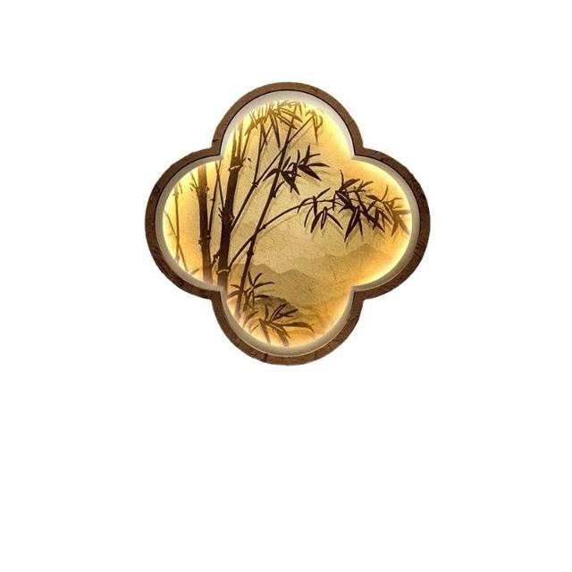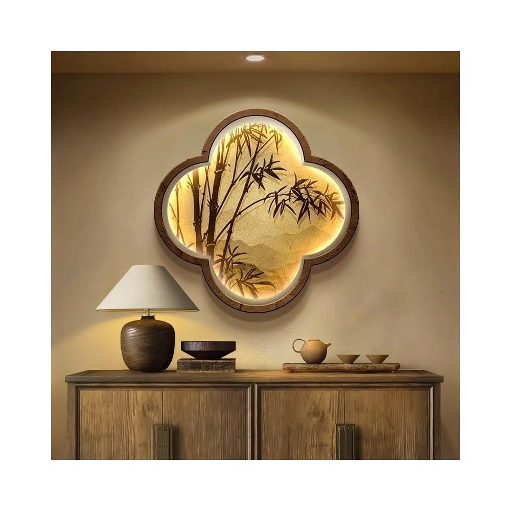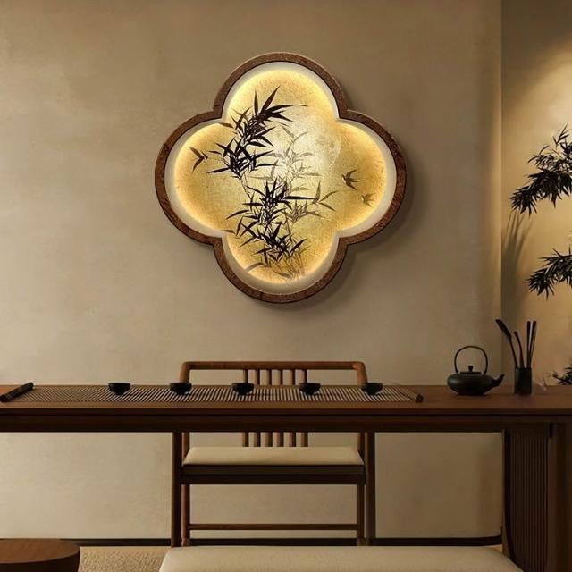 木槿衣坊 新中式玄關裝飾畫高級感竹子畫客廳掛畫禅意茶室背景墻面布置壁燈 55