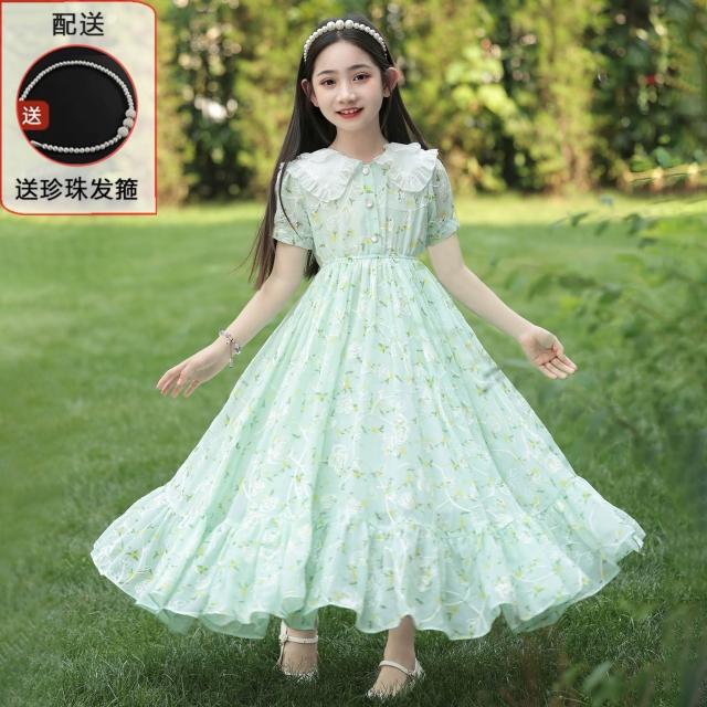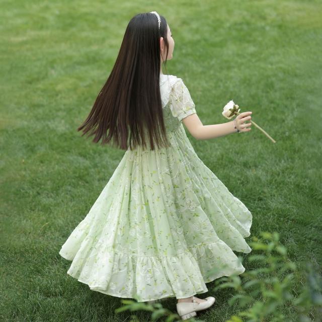 木槿衣坊 女童夏裝連衣裙2025新款兒童公主裙洋氣中大童長裙碎花雪紡裙子夏 3