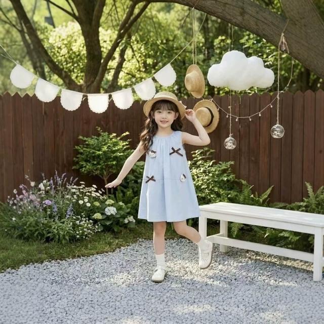 木槿衣坊 女童夏裝連衣裙2026新款兒童卡通蝴蝶結女寶寶夏季洋氣時尚背心公 856