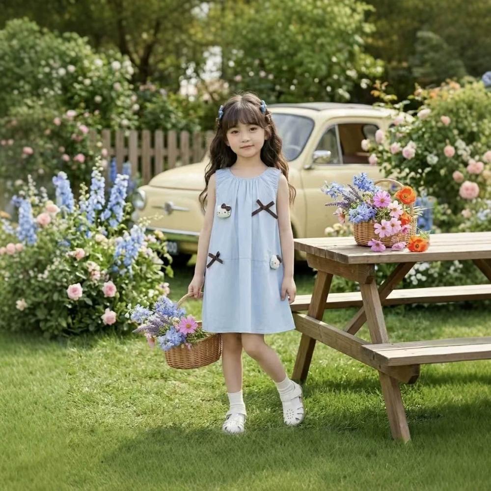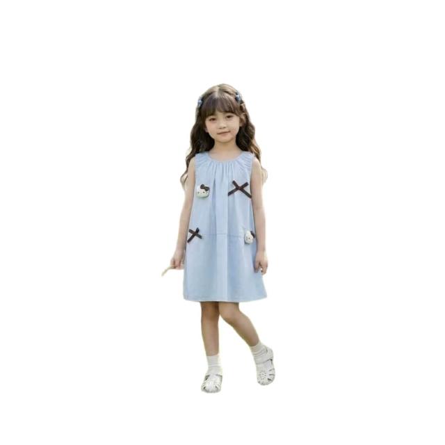 木槿衣坊 女童夏裝連衣裙2026新款兒童卡通蝴蝶結女寶寶夏季洋氣時尚背心公 856