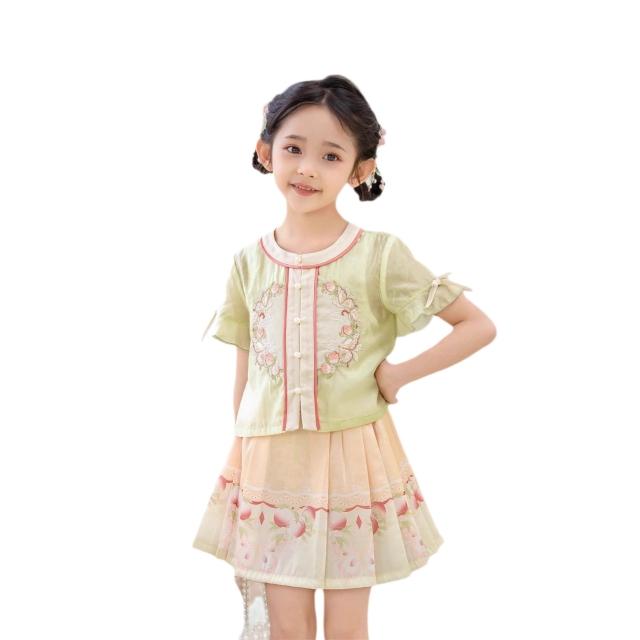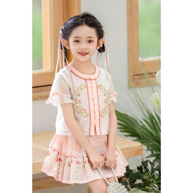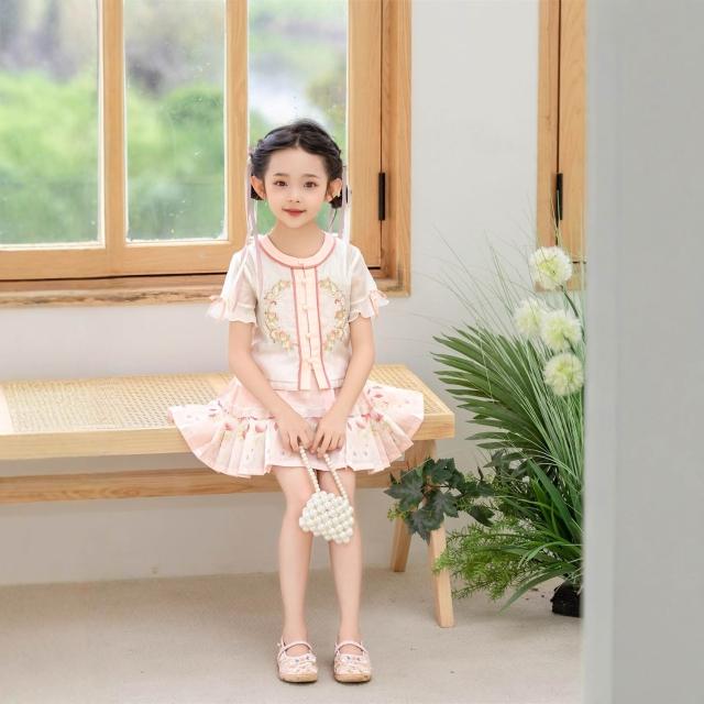 木槿衣坊 2026夏季新款桃粉色女童原創粉色套裝兒童中國風刺繡百褶古風演出 74