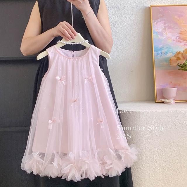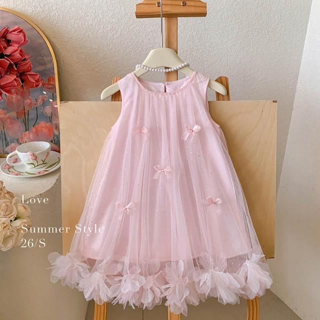 木槿衣坊 女童連衣裙夏裝2026新款洋氣兒童公主裙寶寶蝴蝶結無袖網紗連衣裙 3 7