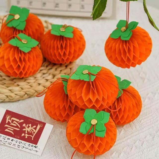 橘子吊飾 橙子掛飾 蜂巢紙橘子 新年裝飾大吉大利 春節年節掛飾 拍照道具 教室佈置節慶布置 桌面擺飾 立體吊飾 過年小物
