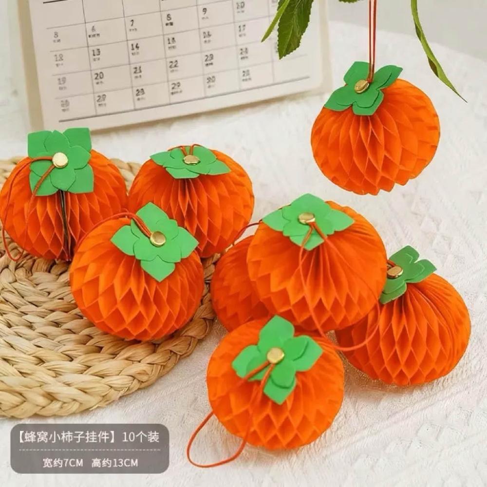 橘子吊飾 橙子掛飾 蜂巢紙橘子 新年裝飾大吉大利 春節年節掛飾 拍照道具 教室佈置節慶布置 桌面擺飾 立體吊飾 過年小物