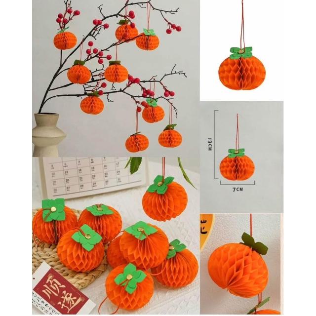 橘子吊飾 橙子掛飾 蜂巢紙橘子 新年裝飾大吉大利 春節年節掛飾 拍照道具 教室佈置節慶布置 桌面擺飾 立體吊飾 過年小物