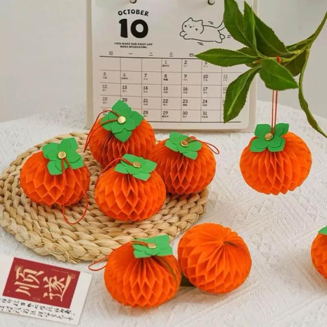 橘子吊飾 橙子掛飾 蜂巢紙橘子 新年裝飾大吉大利 春節年節掛飾 拍照道具 教室佈置節慶布置 桌面擺飾 立體吊飾 過年小物