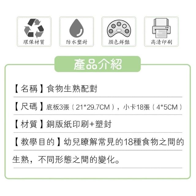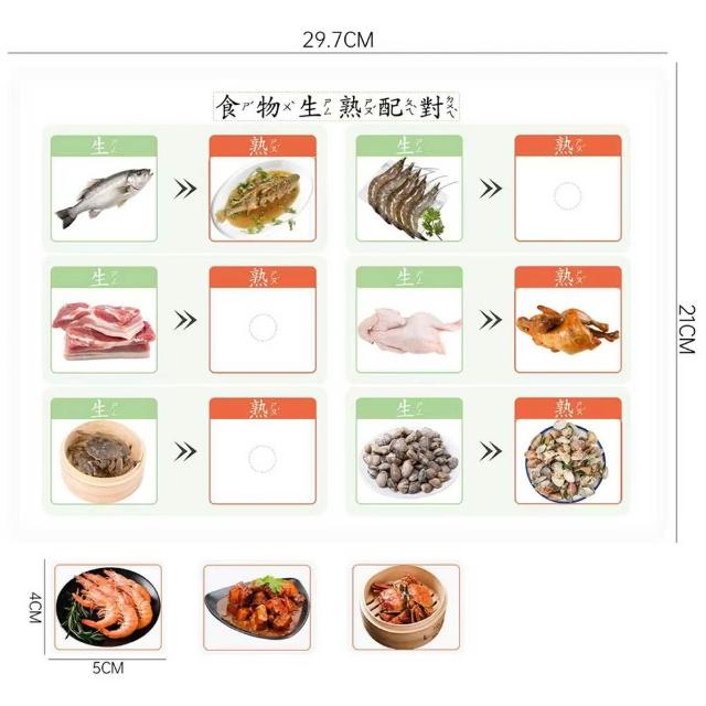 食物生熟配對學習卡 生食與熟食圖卡配對