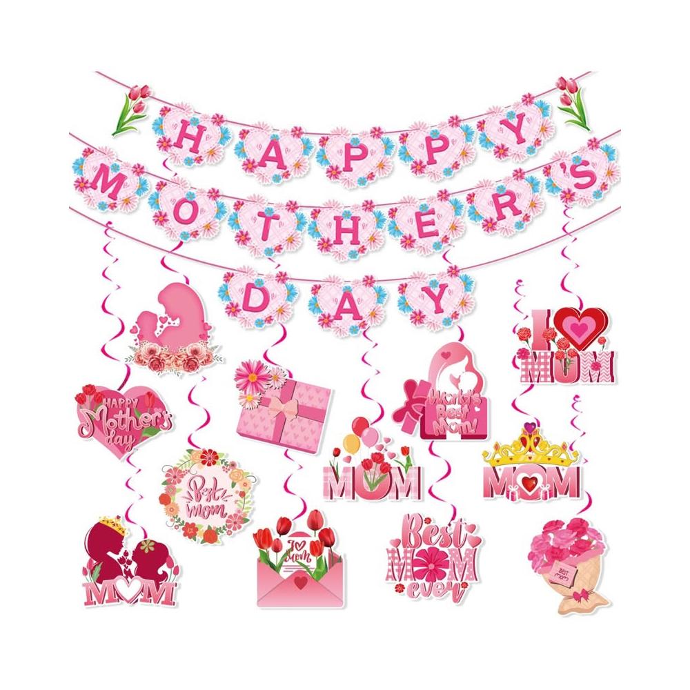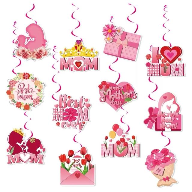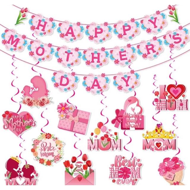 感謝季 母親節活動 母親節佈置 螺旋拉旗 紙卡拉旗 母親節活動佈置