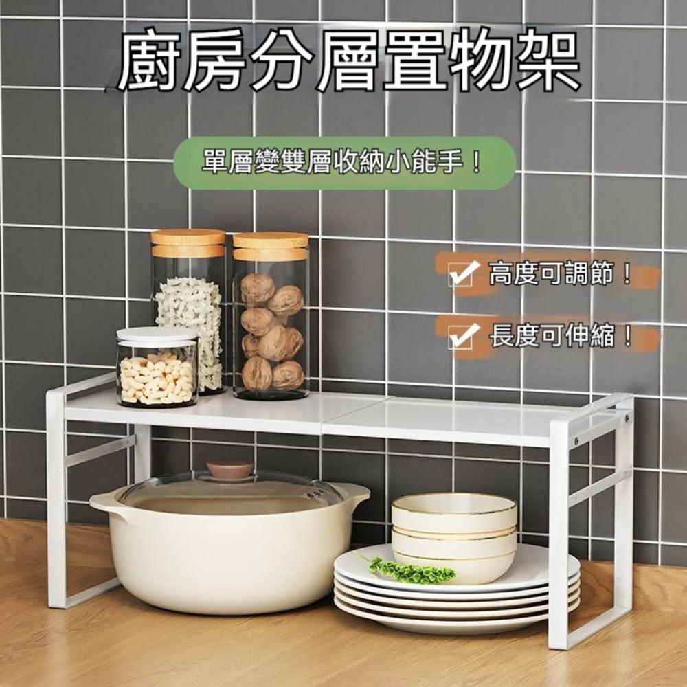 可伸縮置物架 廚房櫥櫃分層架柜子 收納架 隔層廚櫃 隔板調料架子鍋具