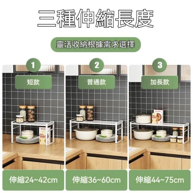 可伸縮置物架 廚房櫥櫃分層架柜子 收納架 隔層廚櫃 隔板調料架子鍋具