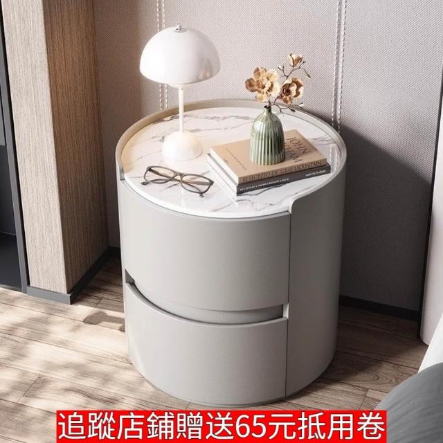 🔥 實木床頭櫃 床頭櫃 圓形床頭櫃 輕奢巖闆床頭櫃 收納櫃 床邊櫃 抽屜櫃 置物櫃