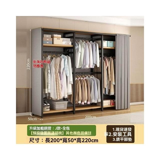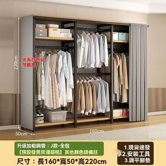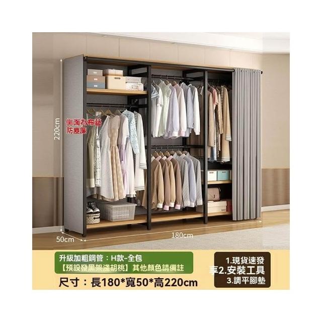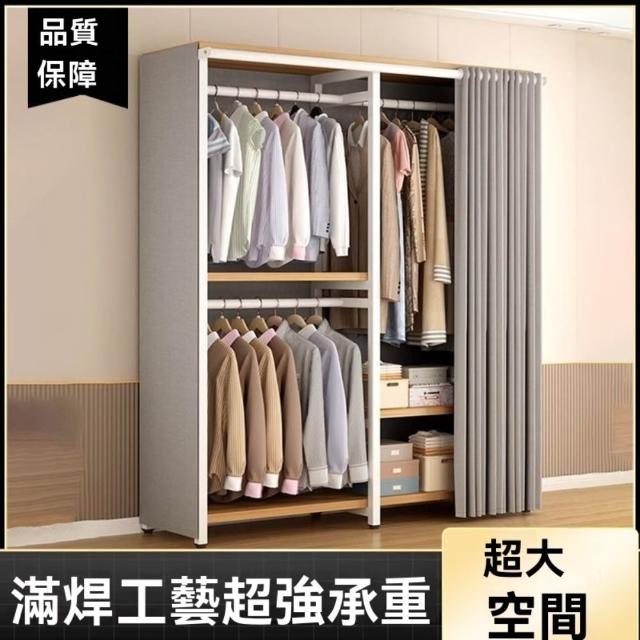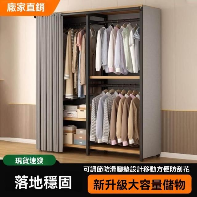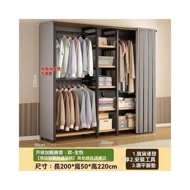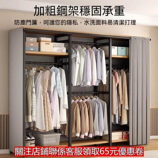 🔥穩固加厚🔥簡易衣櫃 加厚加粗鋼架衣櫃 大容量衣物收納櫃 衣櫥 大衣掛衣櫃 經濟型衣櫃 出租房衣櫃 多分區衣帽架