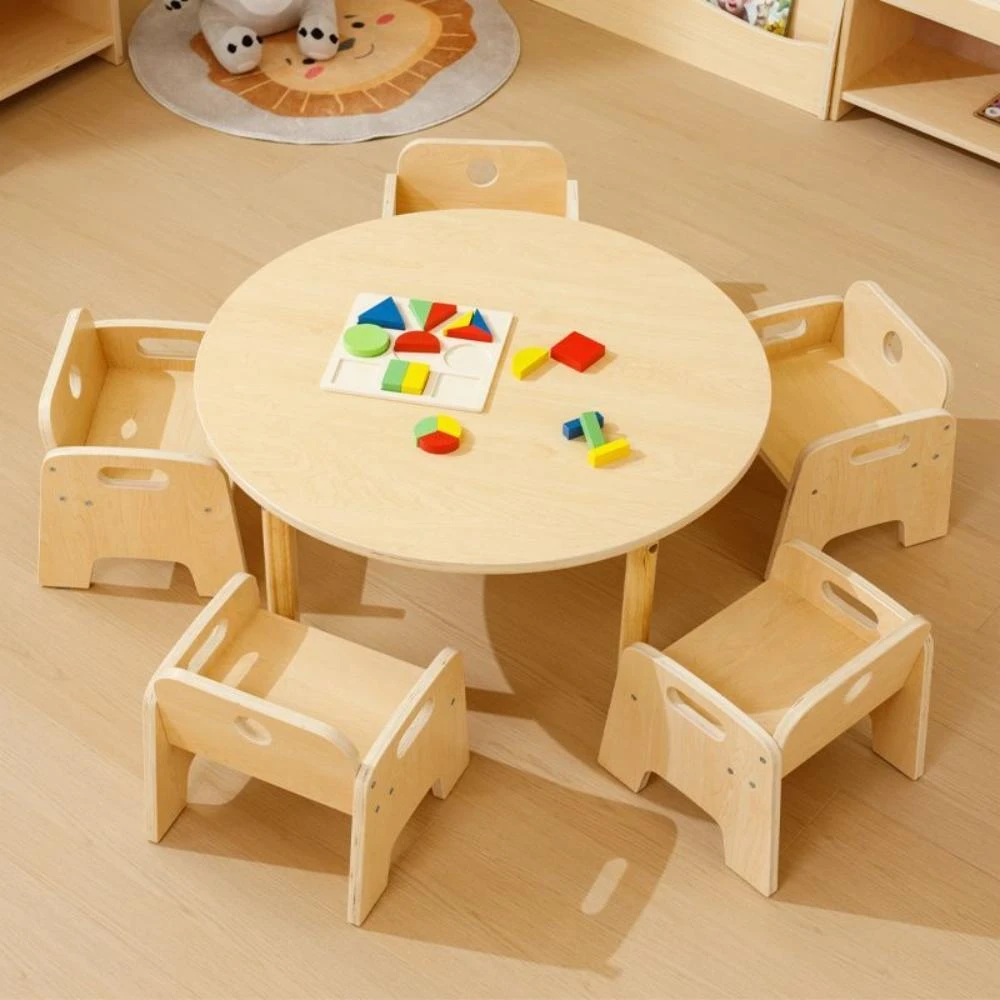實木圓桌早敎培訓班桌托育機構正方桌傢用學習桌椅套裝 書桌 桌椅 幼家用塑料遊戲桌