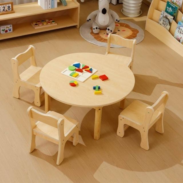 實木圓桌早敎培訓班桌托育機構正方桌傢用學習桌椅套裝 書桌 桌椅 幼家用塑料遊戲桌