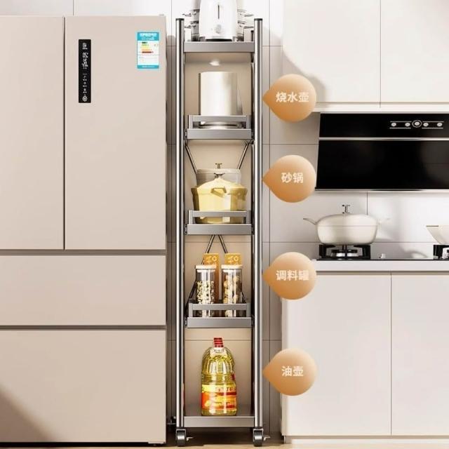 廚房夾縫置物架角落地多層冰箱旁邊側麵縫隙收納櫃抽屜抽拉式儲物