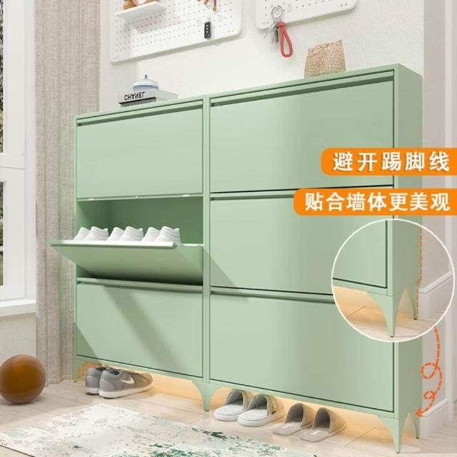 超薄鞋櫃 鞋櫃 玄關鞋櫃 翻斗鞋櫃超薄鞋櫃鋼製站腳12.2cm家用門口入戶玄關鐵皮金屬極窄翻斗防塵