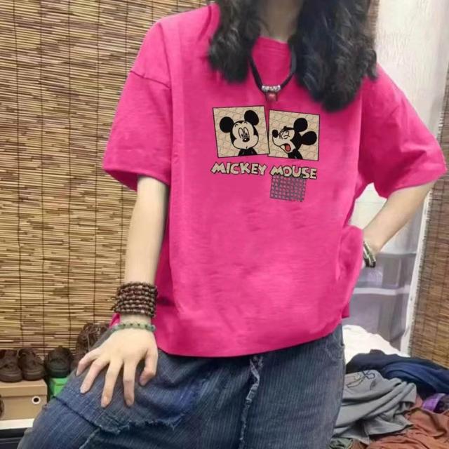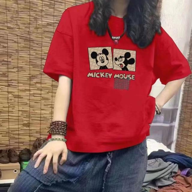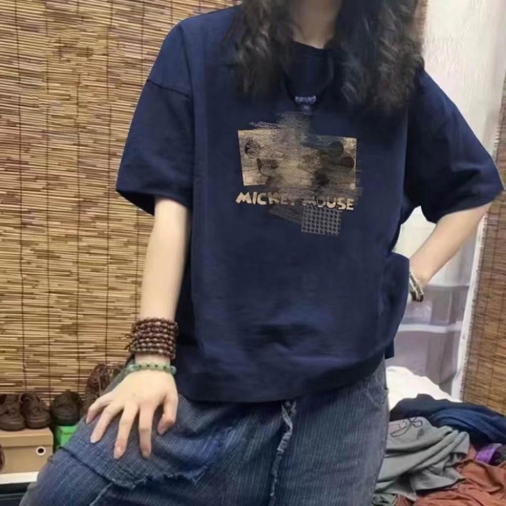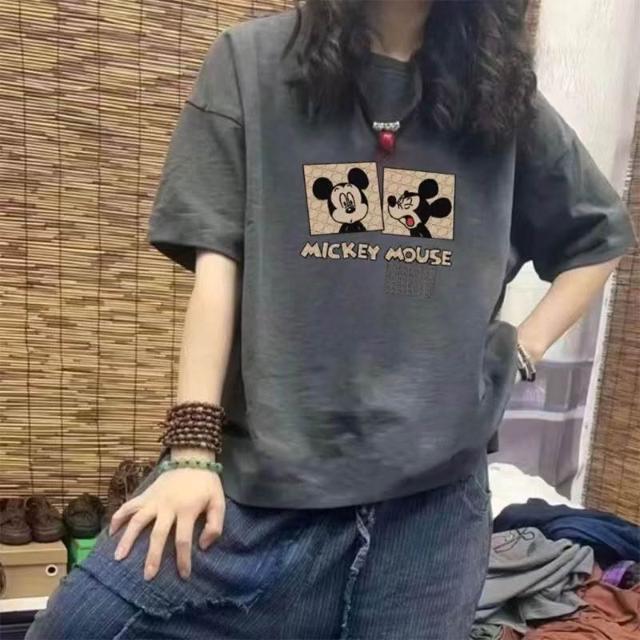 100%純棉短袖T恤 夏天衣服 韓版ins 寬鬆減齡 卡通印花 學生T 大碼顯瘦 遮肉 半袖 中長款 圓領女上衣