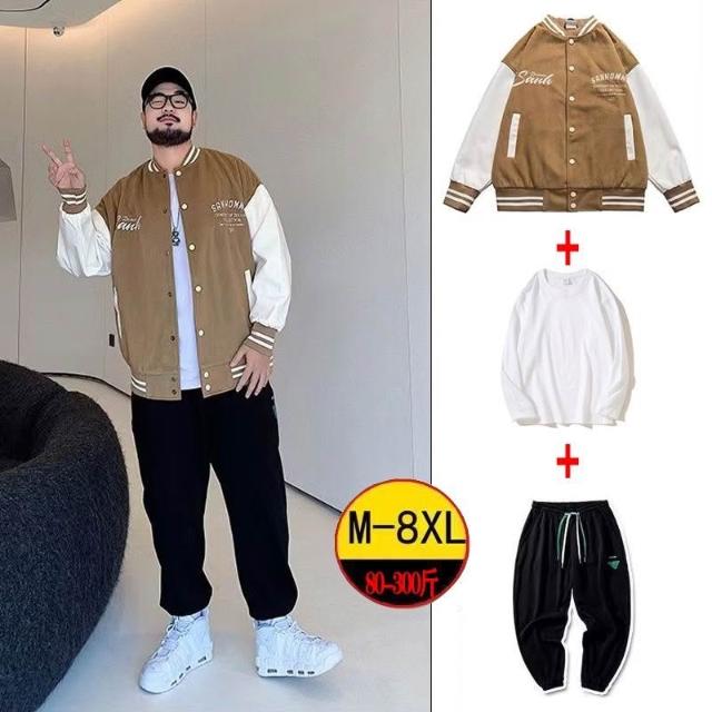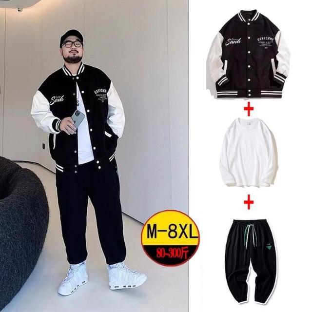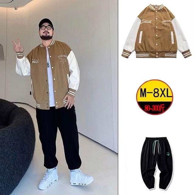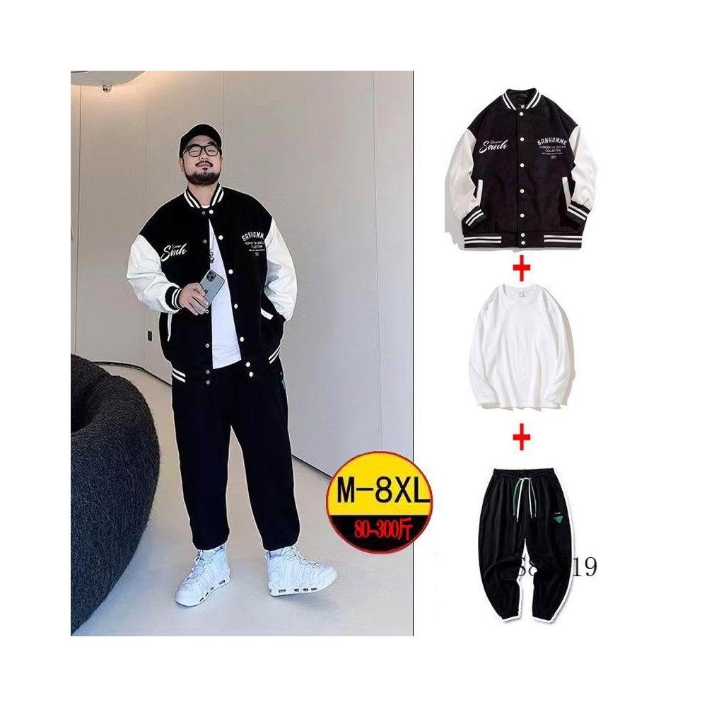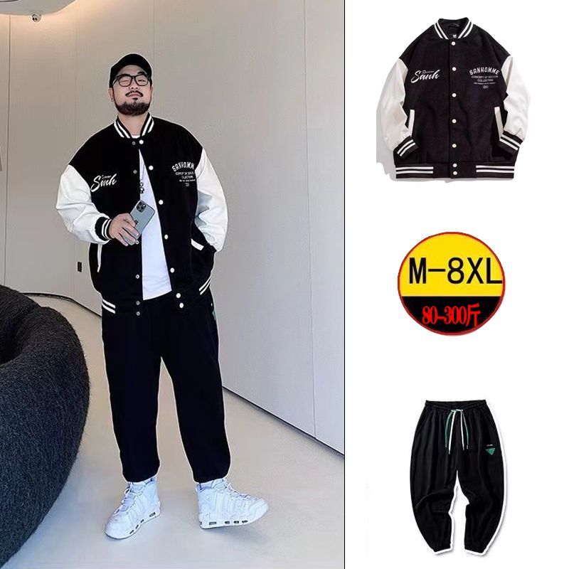 潮牌棒球服男士秋冬季立領寬鬆外套長褲痞帥男裝一套搭配帥氣套裝