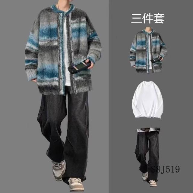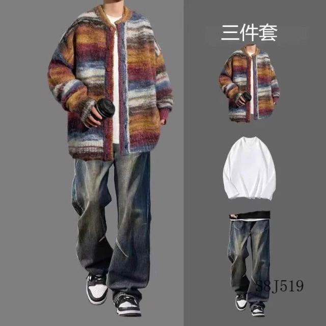 扎染毛衣男套裝秋冬潮流開衫外套新款三件套搭配牛仔褲一套1/2件