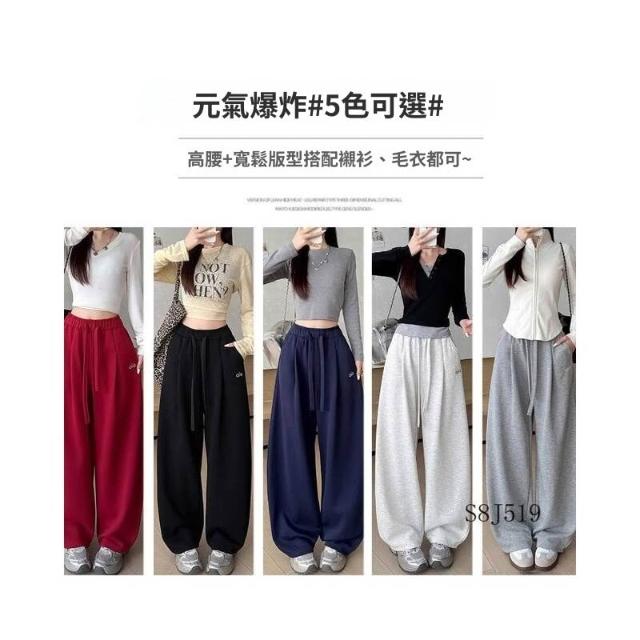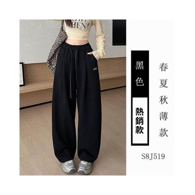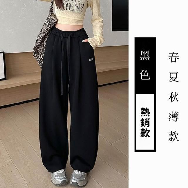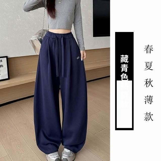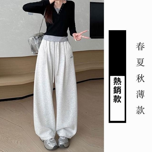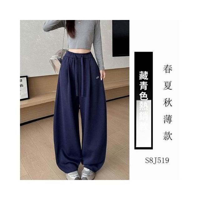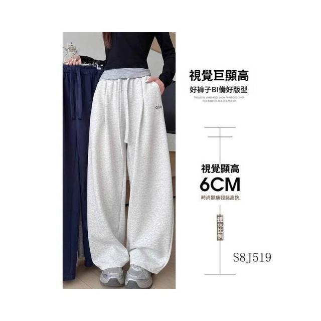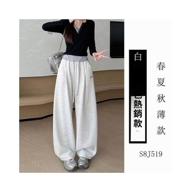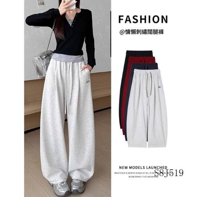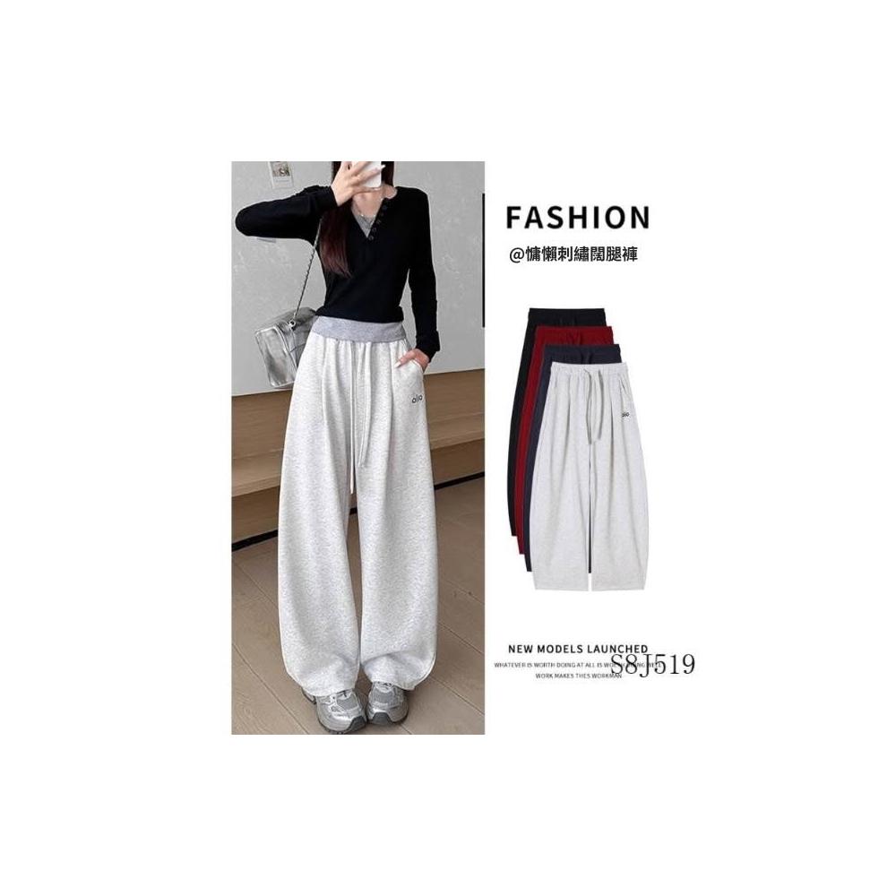 大碼300斤白灰色美式彎刀闊腿褲女春秋款高腰顯瘦刺繡休閒香蕉褲