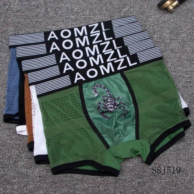 男士內褲男平角褲網紗薄款冰絲透氣透明性感莫代爾印花鏤空短褲衩