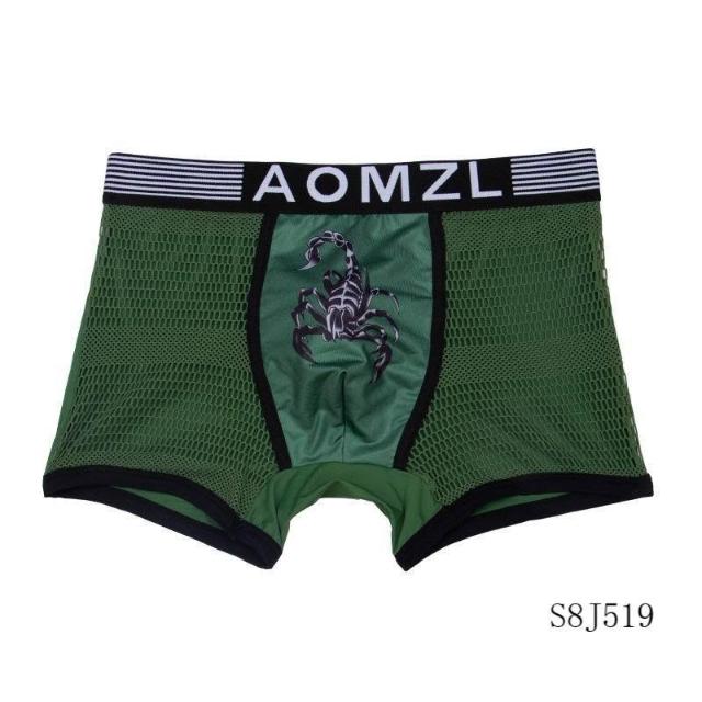男士內褲男平角褲網紗薄款冰絲透氣透明性感莫代爾印花鏤空短褲衩