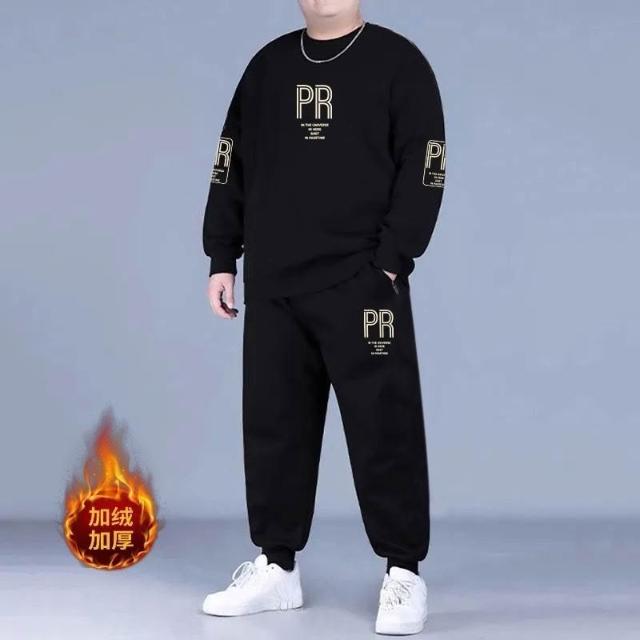 新款秋冬季男士大碼衛衣衛褲兩件套寬鬆運動套裝加絨加厚束腳褲子