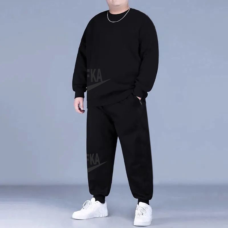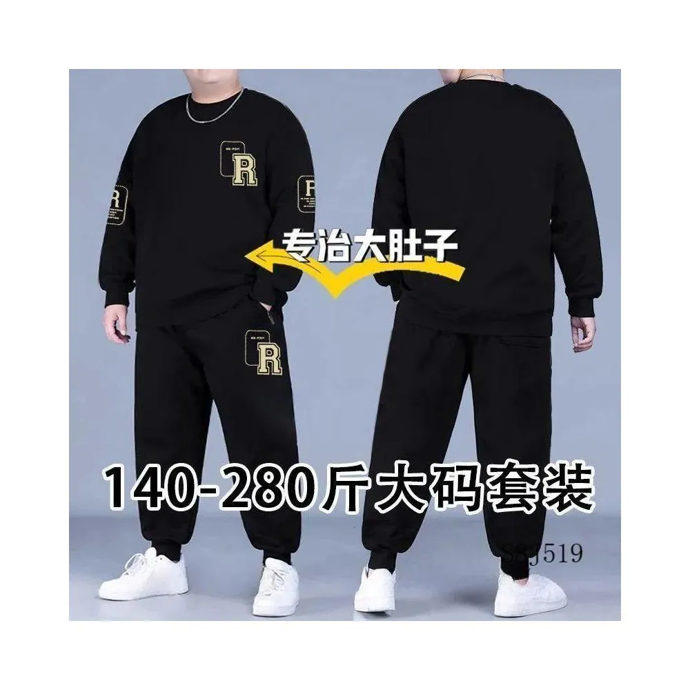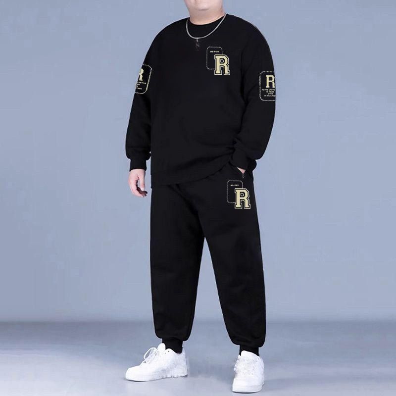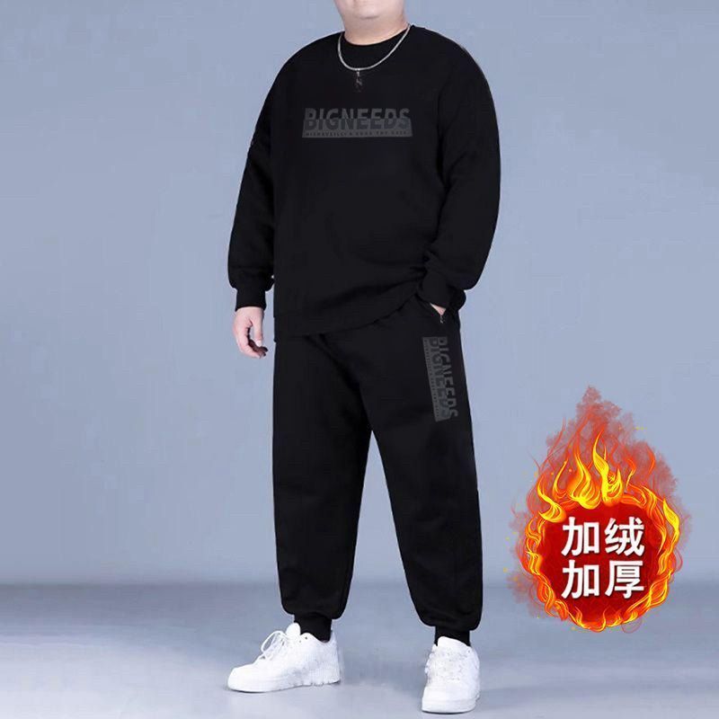 新款秋冬季男士大碼衛衣衛褲兩件套寬鬆運動套裝加絨加厚束腳褲子