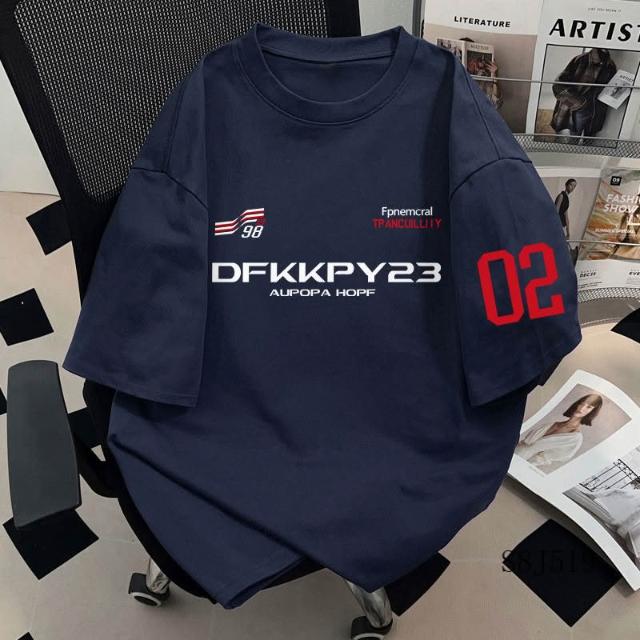 重磅純棉美式運動復古ins短袖男女夏季炸街高級感數字印花上衣服