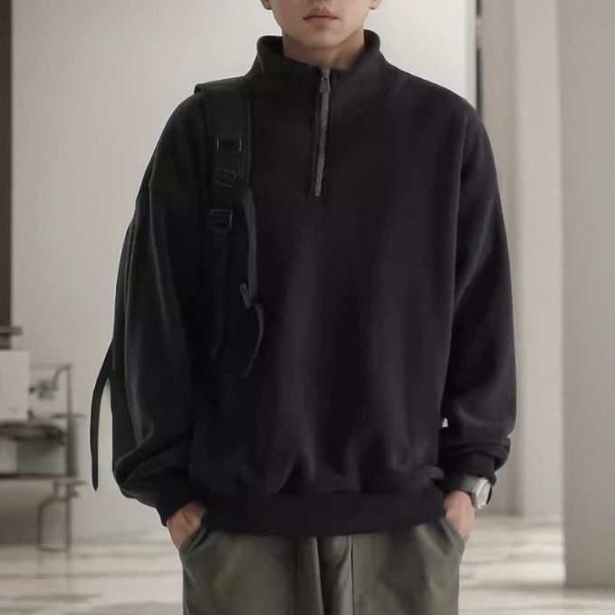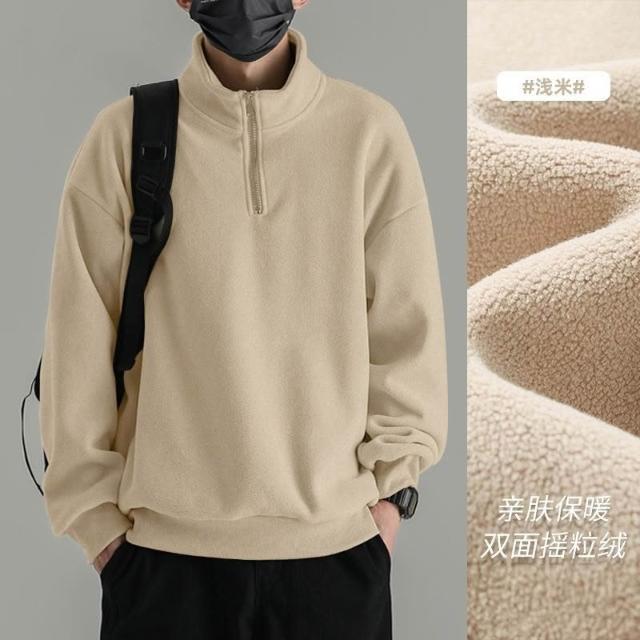台灣免運男士搖粒絨衛衣拉鍊高領立領保暖秋冬季加絨加厚雙面絨打底上衣男2280