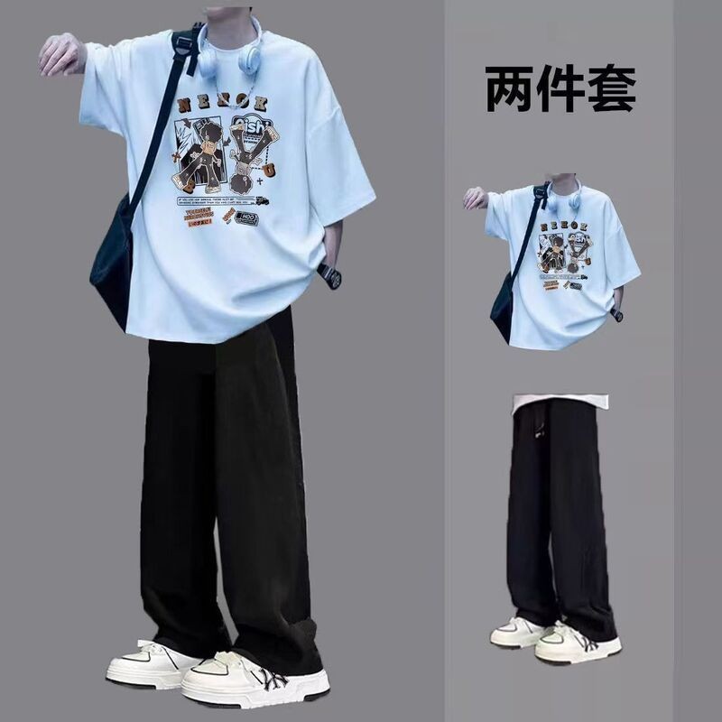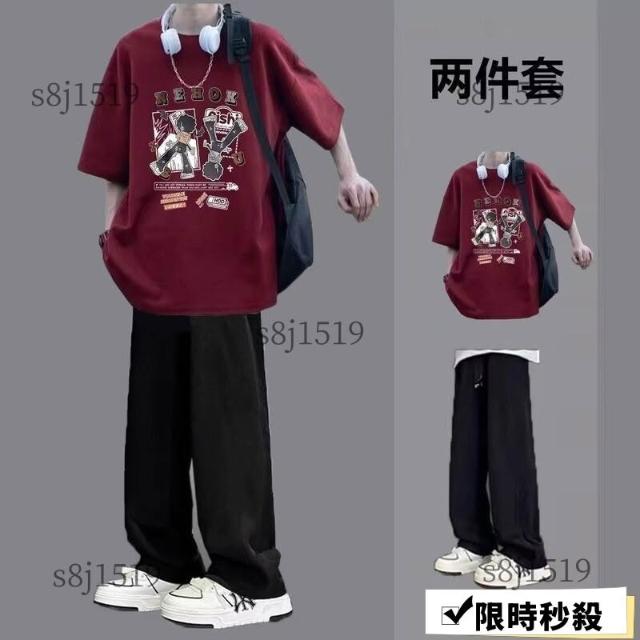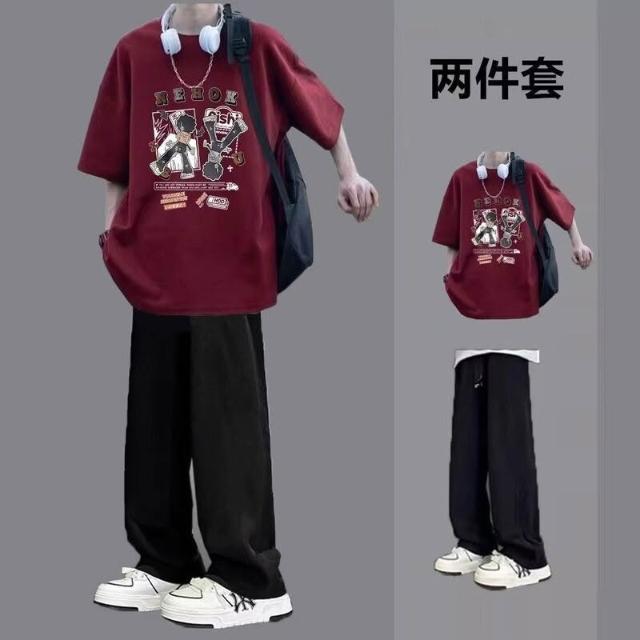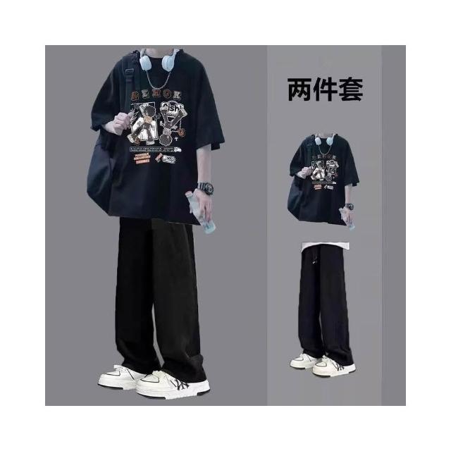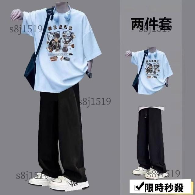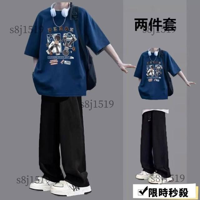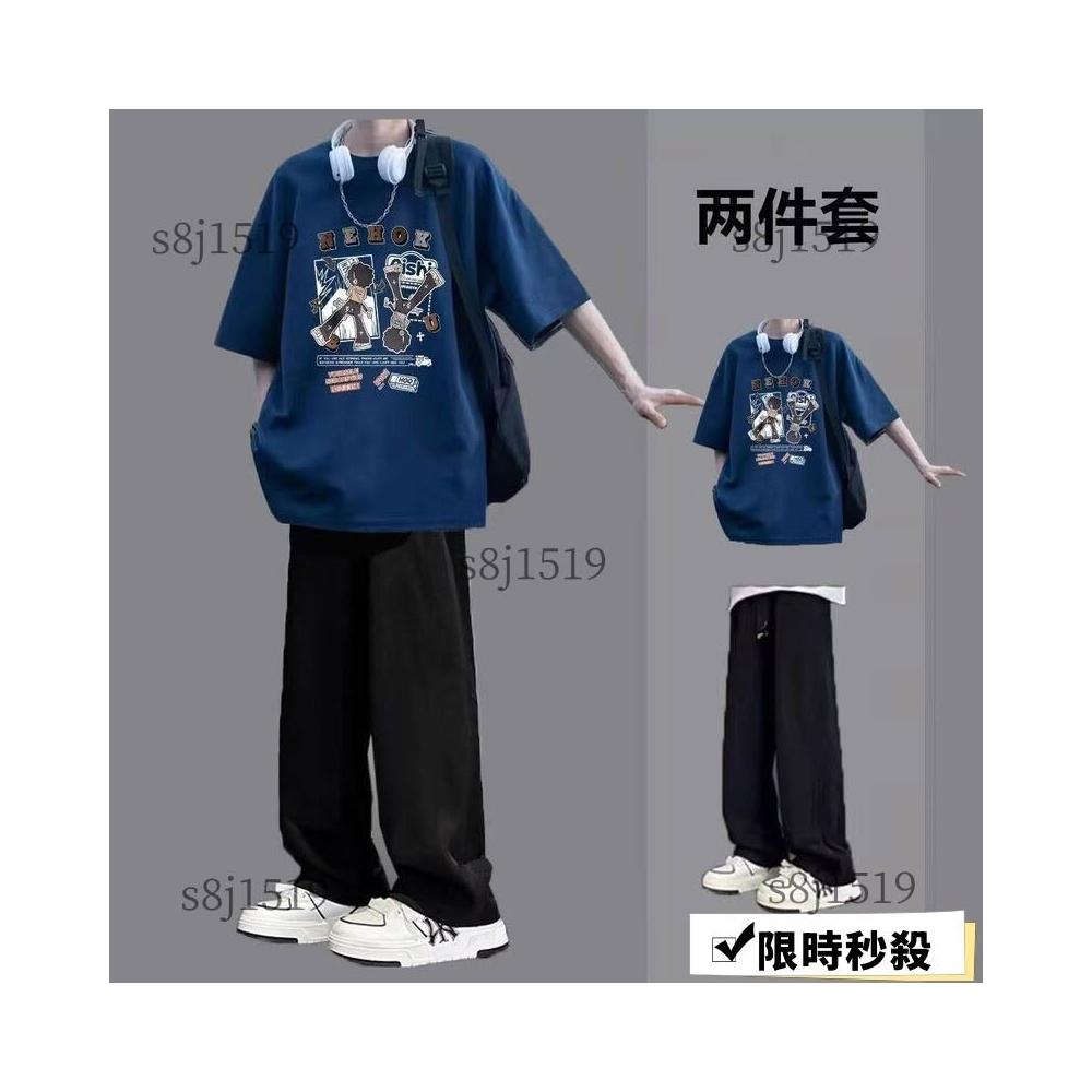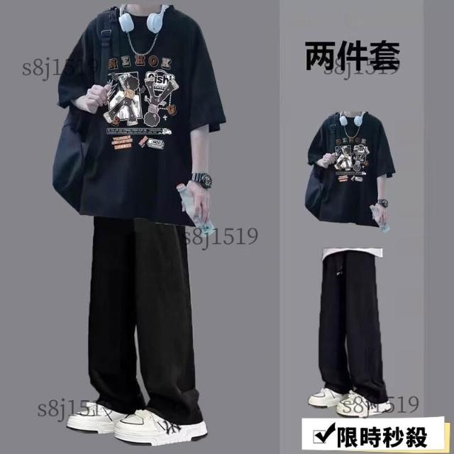 台灣免運韓版套裝 學院風 兩件式套裝 夏季潮牌學生短袖套裝男生潮流T男裝一套搭配休閒褲痞帥兩件套373