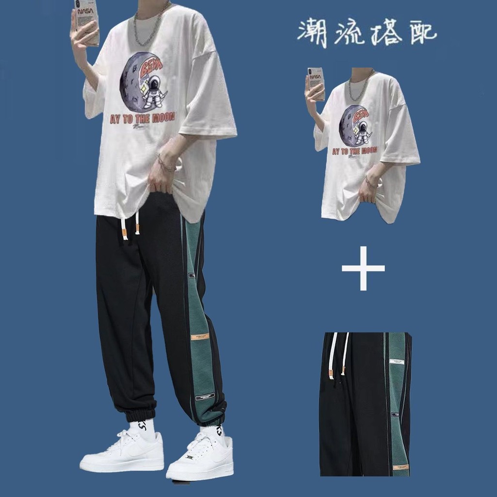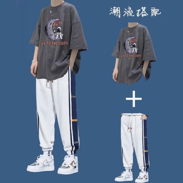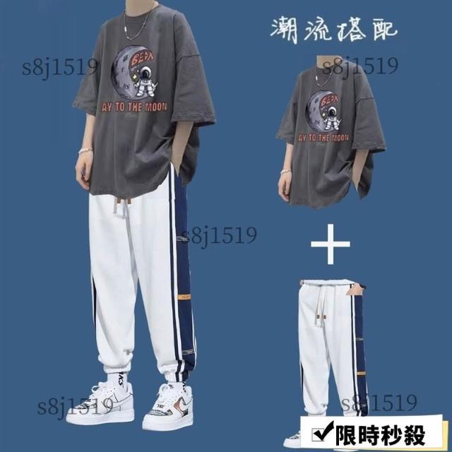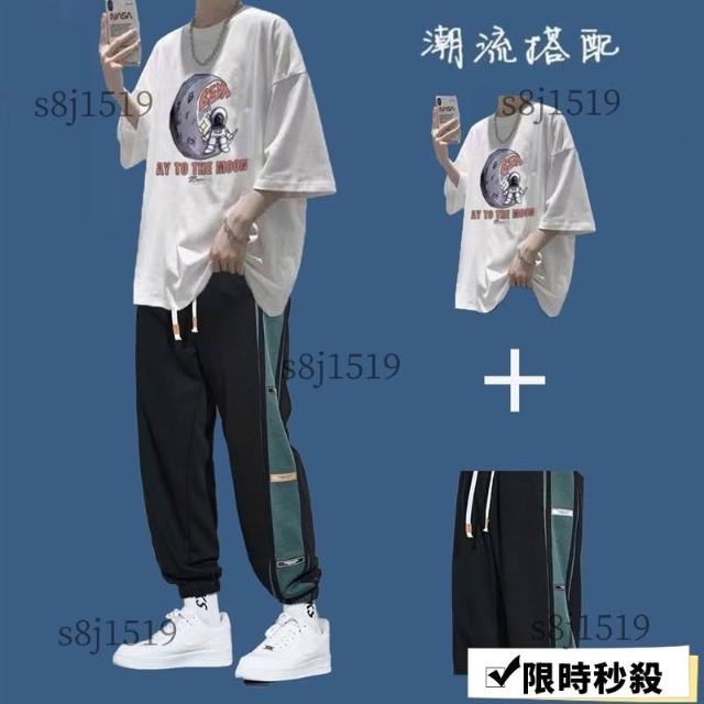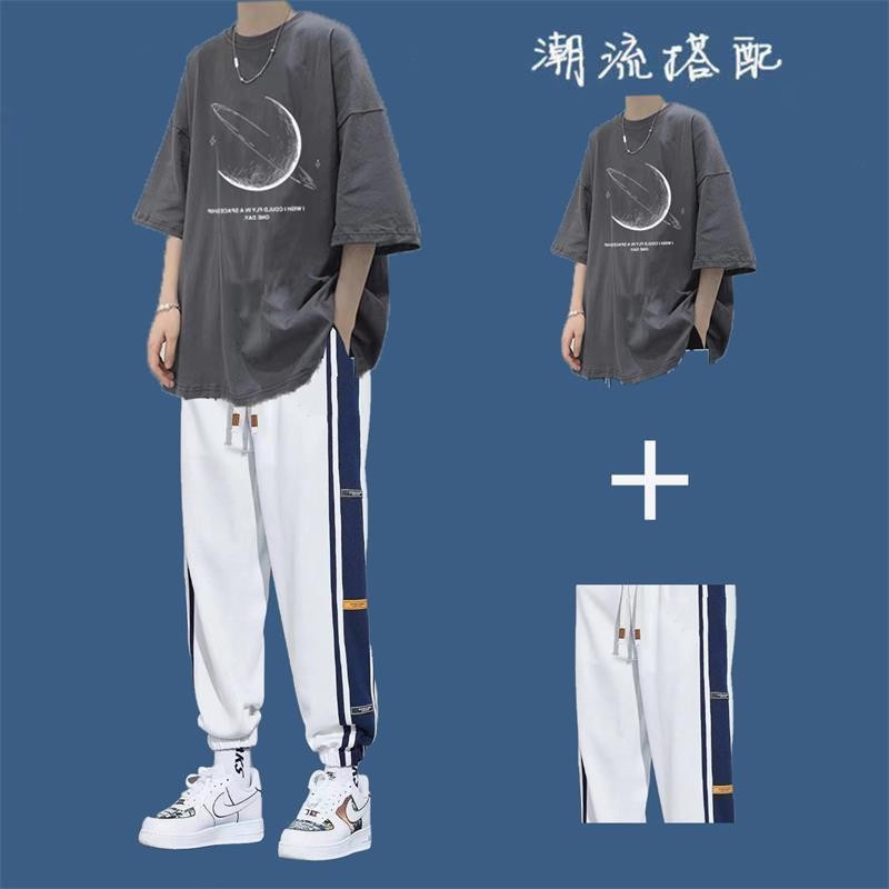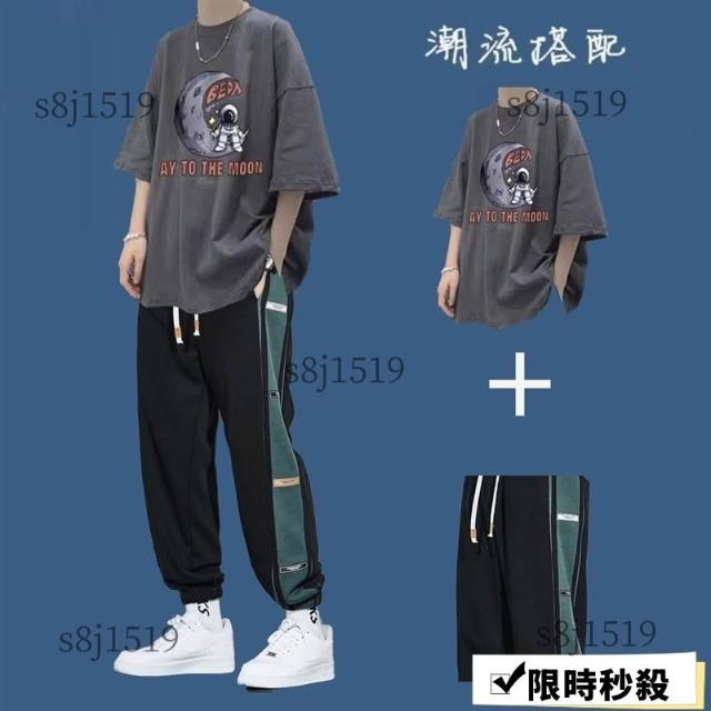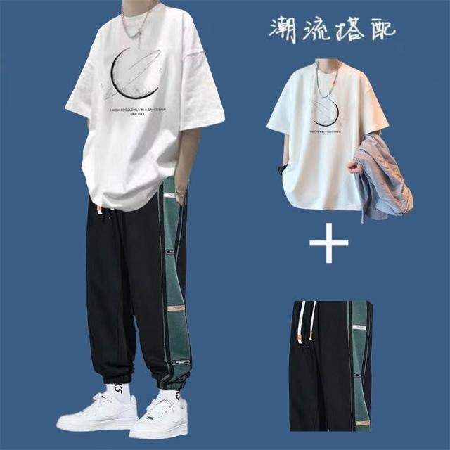 台灣免運套裝男 兩件式套裝 T恤男生短袖套裝夏季潮牌衣服ins港風百搭男裝一套帥氣運動兩件套632