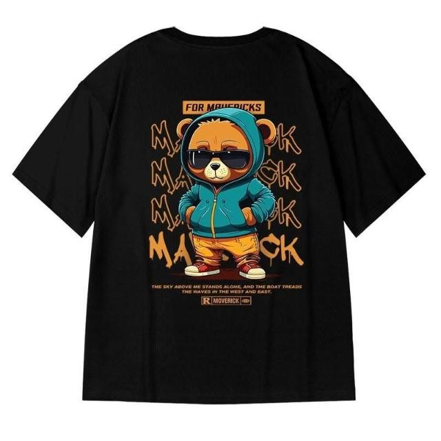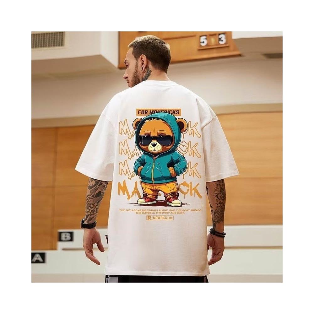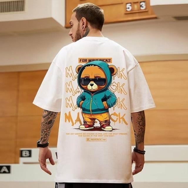 台灣免運美式夏季胖子新款男裝大碼寬鬆小熊印花短袖潮流T恤休閒半袖2478