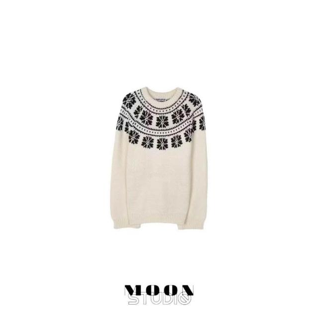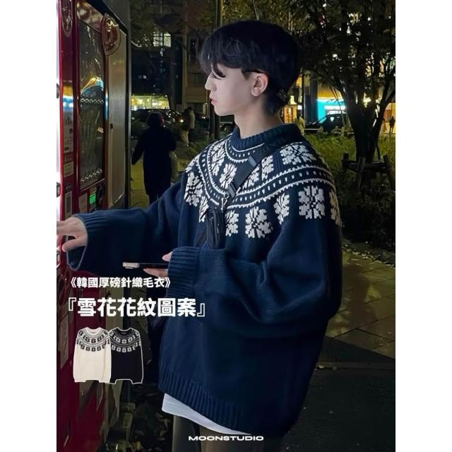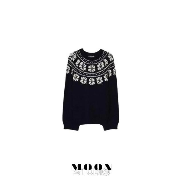 韓國🇰🇷 雪花花紋印花套頭毛衣 針織毛衣 圓領毛衣 慵懶風 包暖 花紋毛衣 針織毛衣 長袖