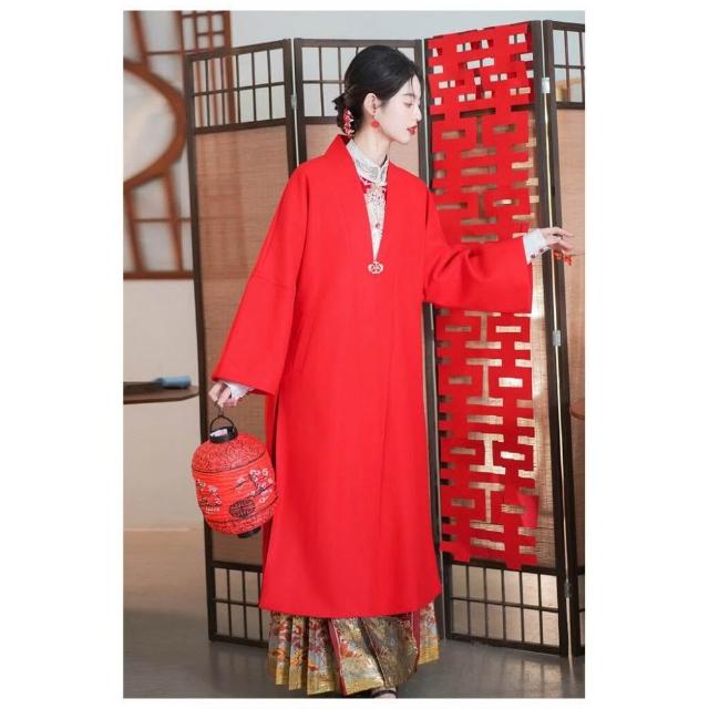 S-4XL 敬酒服 訂婚禮服 重工馬面裙雲肩漢服套裝 新中式國風套裝 大尺碼女裝 大碼馬面裙套裝 新中式穿搭