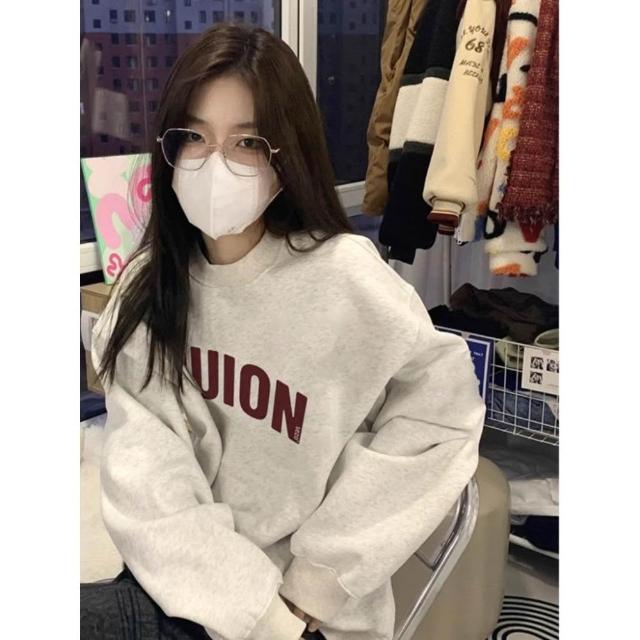 純棉衛衣 大學t 薄衛衣 字母印花 美式復古長袖上衣 oversize大學t 潮流衣服 秋冬上衣