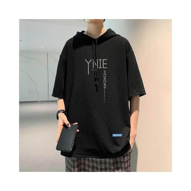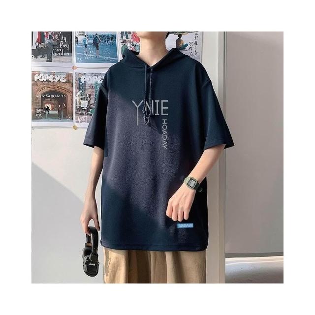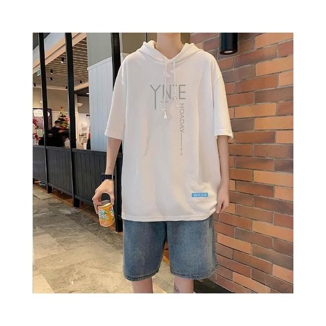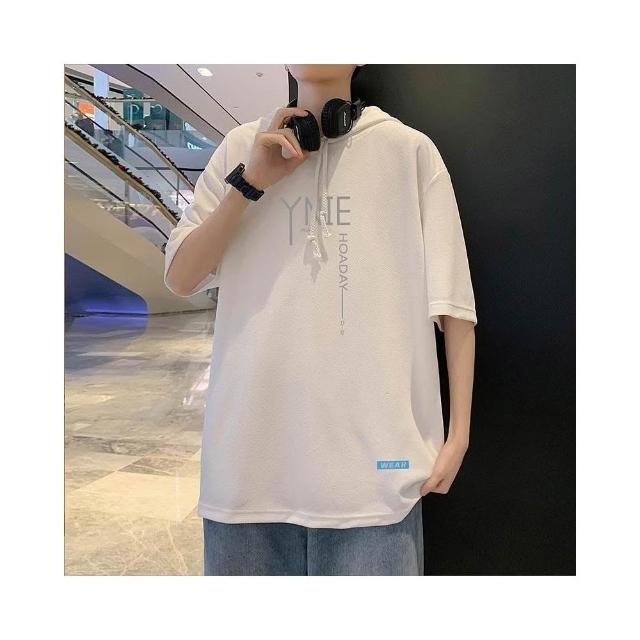 台灣免運【3224人收藏】簡約百搭連帽短袖t恤男夏寬鬆半袖衛衣微胖初中生休閒上衣體恤126338