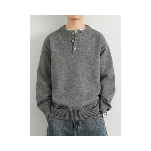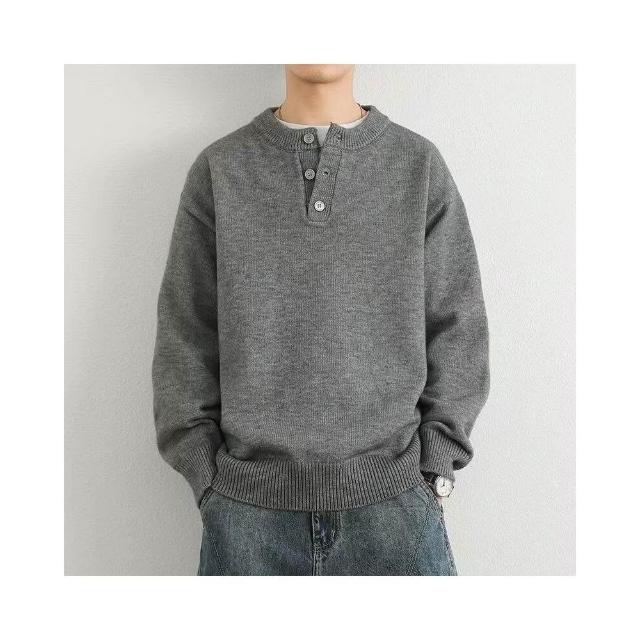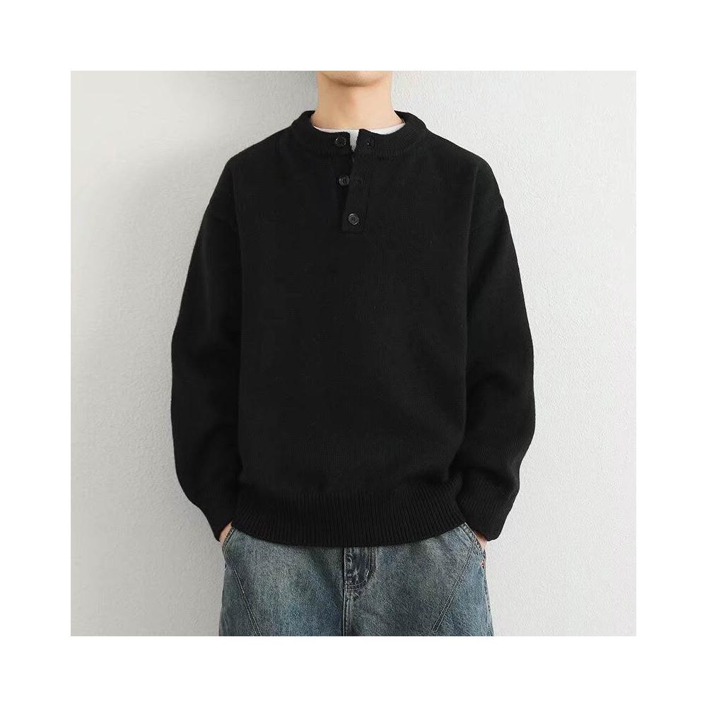 台灣免運2024日系vintage毛衣男女秋裝ins慵懶風bf復古軟糯套頭鈕釦針織6401
