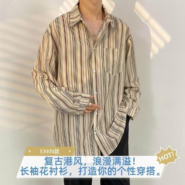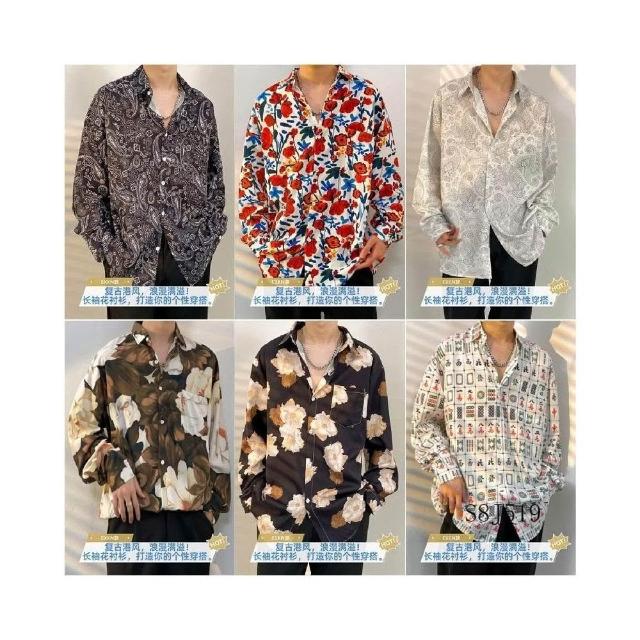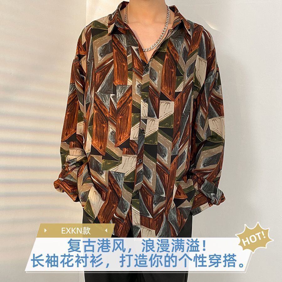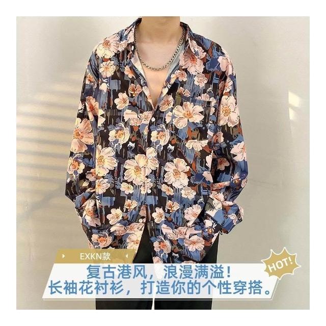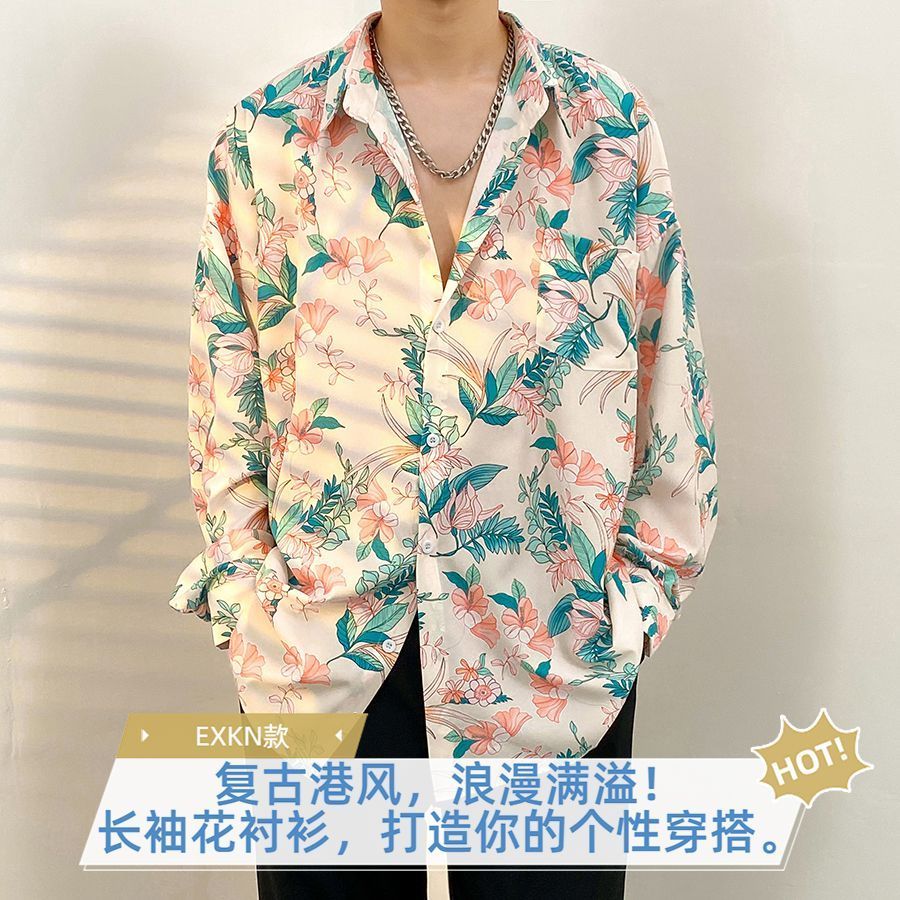 港風vintage花襯衫男女復古夏威夷痞帥寬鬆情侶長袖襯衣潮牌外套