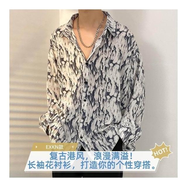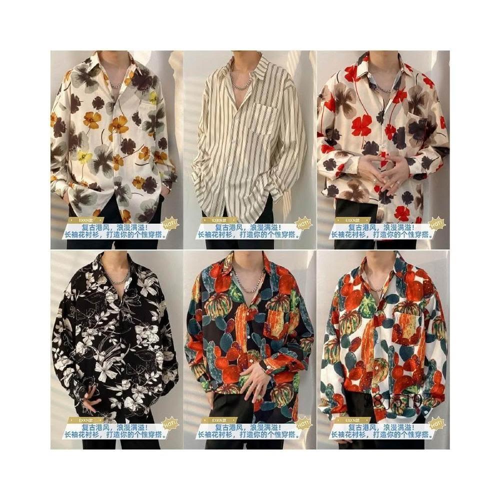 港風vintage花襯衫男女復古夏威夷痞帥寬鬆情侶長袖襯衣潮牌外套