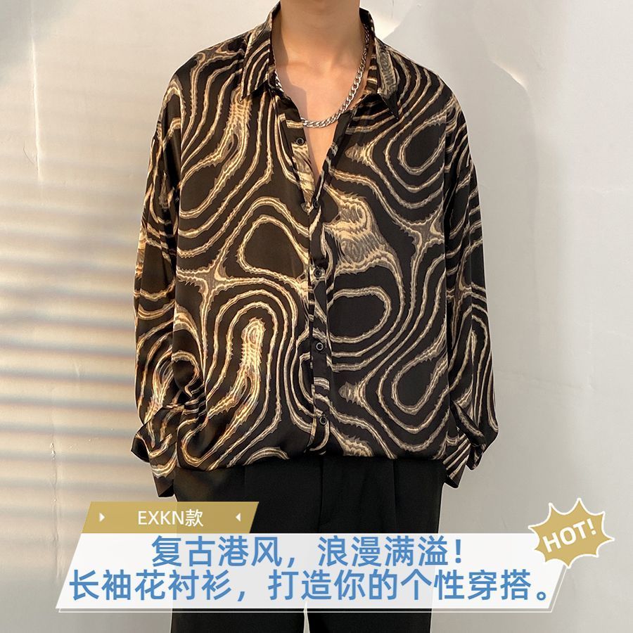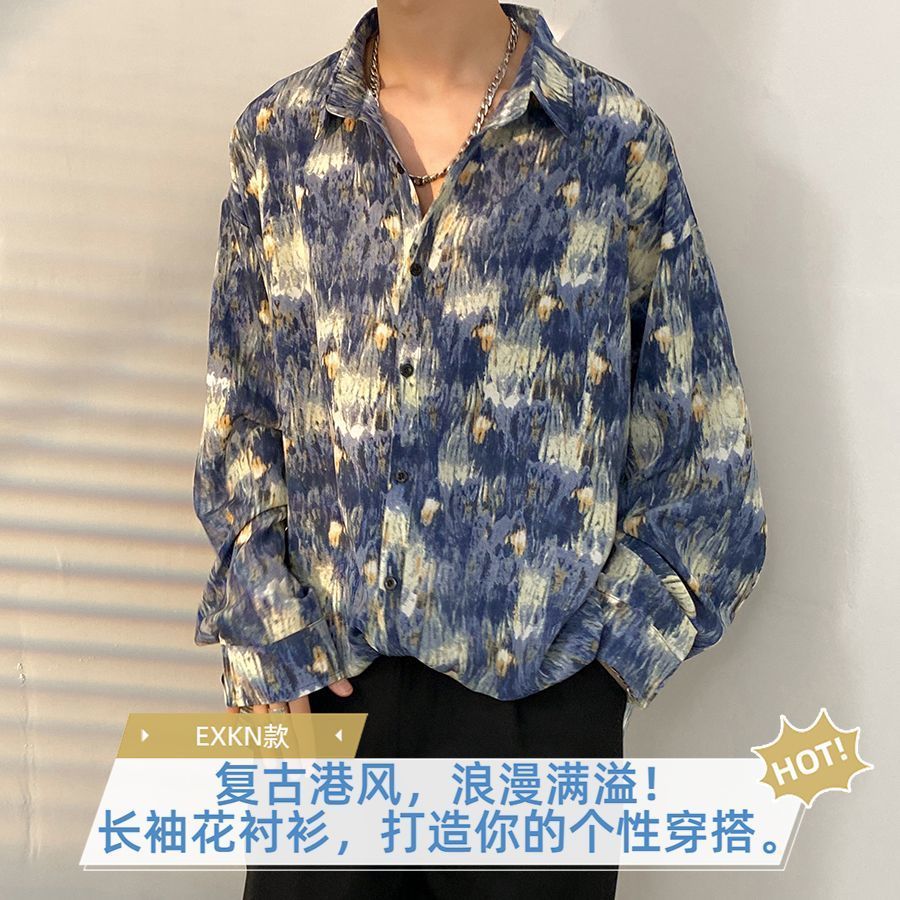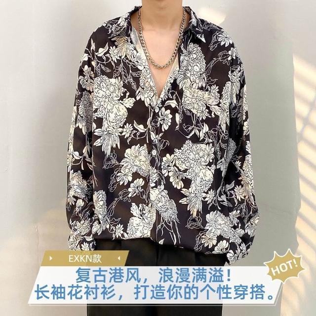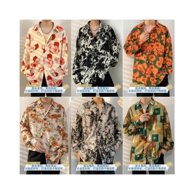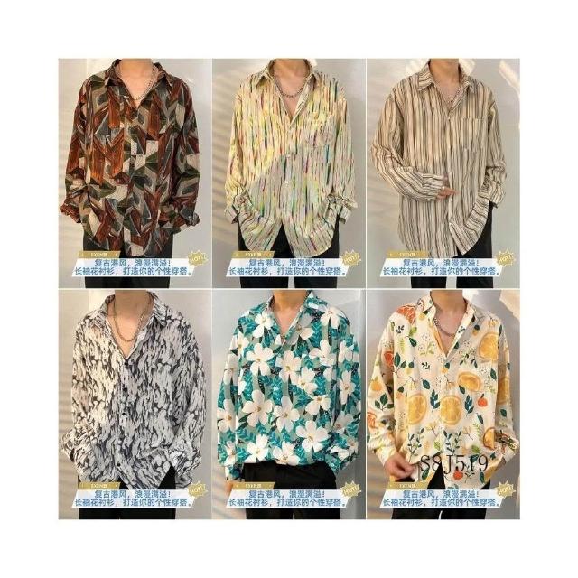 港風vintage花襯衫男女復古夏威夷痞帥寬鬆情侶長袖襯衣潮牌外套