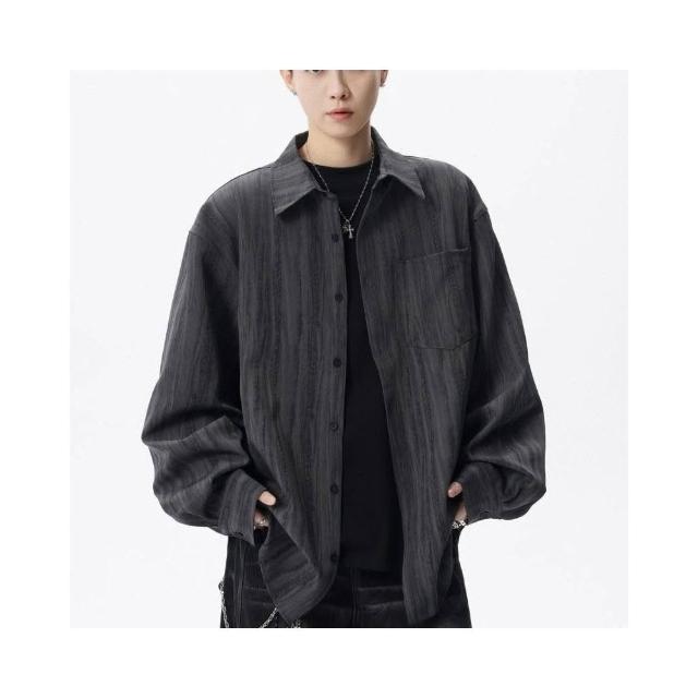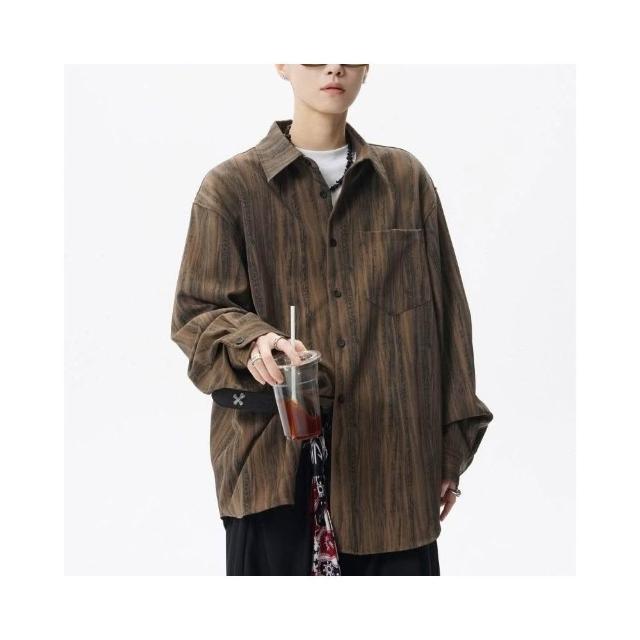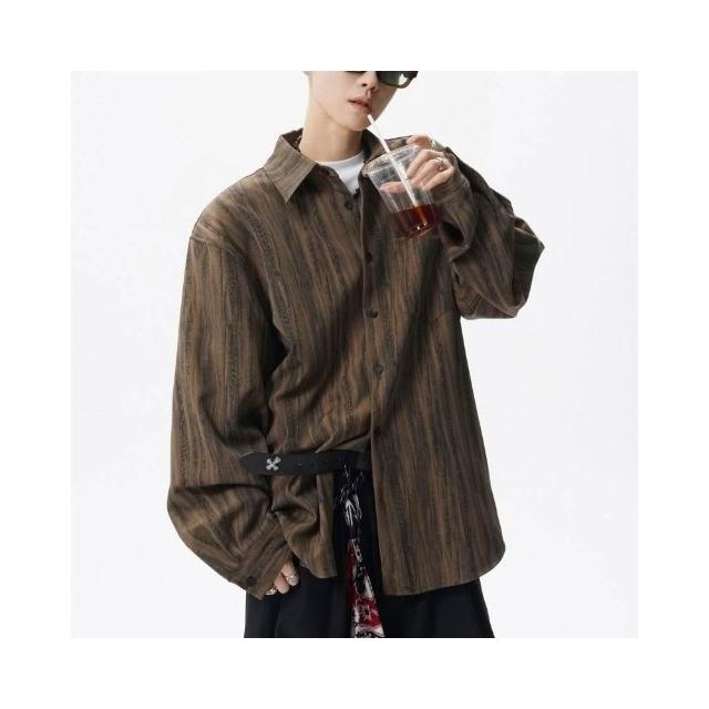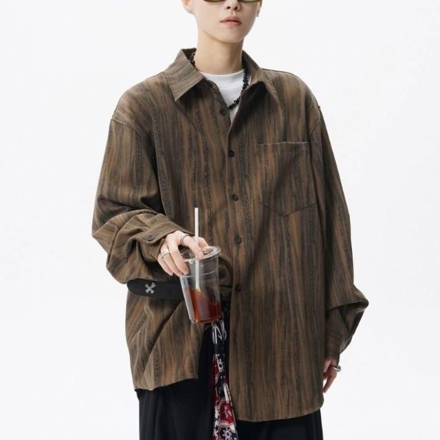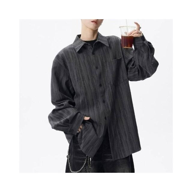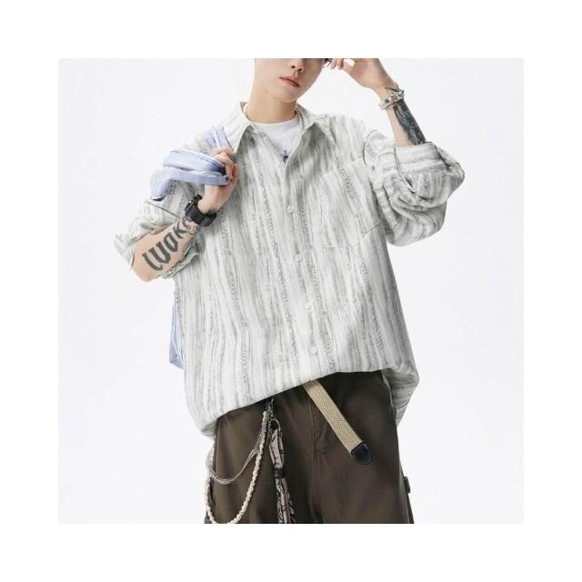 台灣免運設計感扎染條紋長袖襯衫2025秋季新款寬鬆休閒翻領痞帥長袖襯衣男965