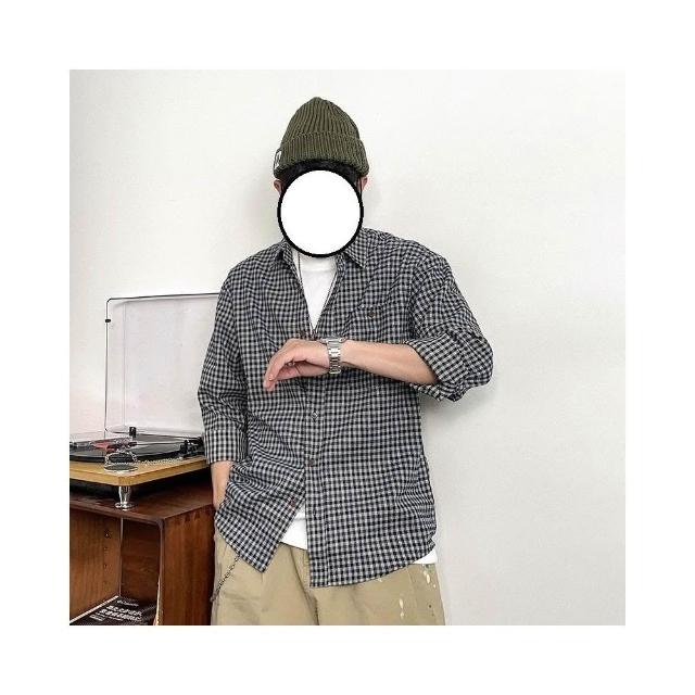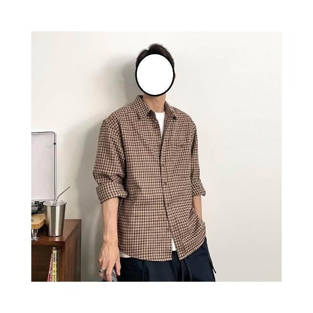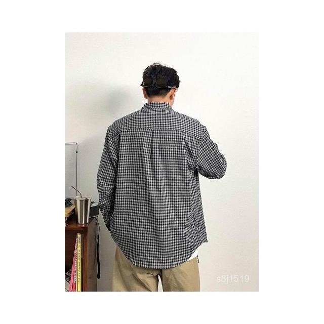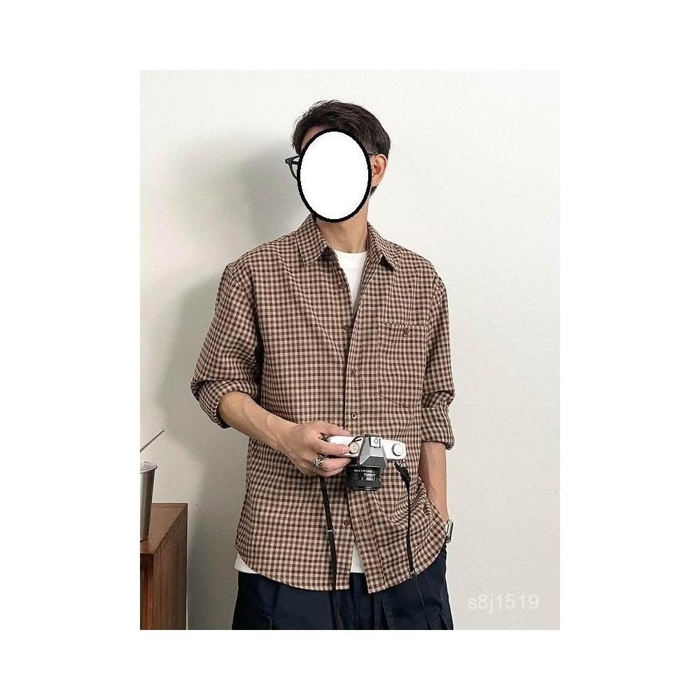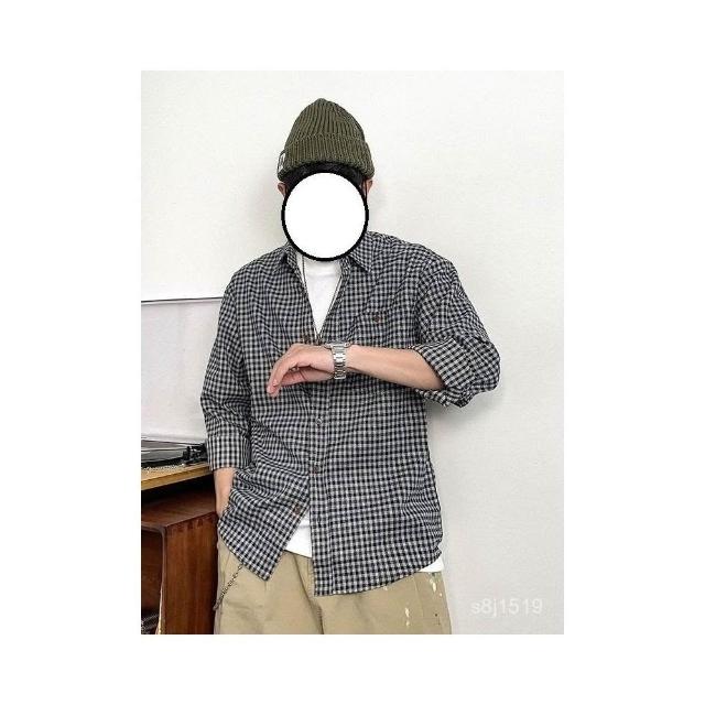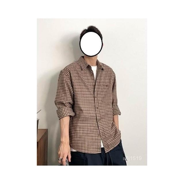台灣熱賣 美式複古小格子長袖襯衫男士春秋新款潮流百搭翻領休閒襯衣外套潮