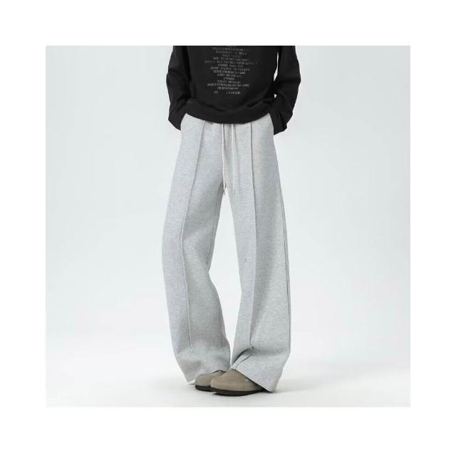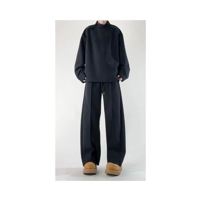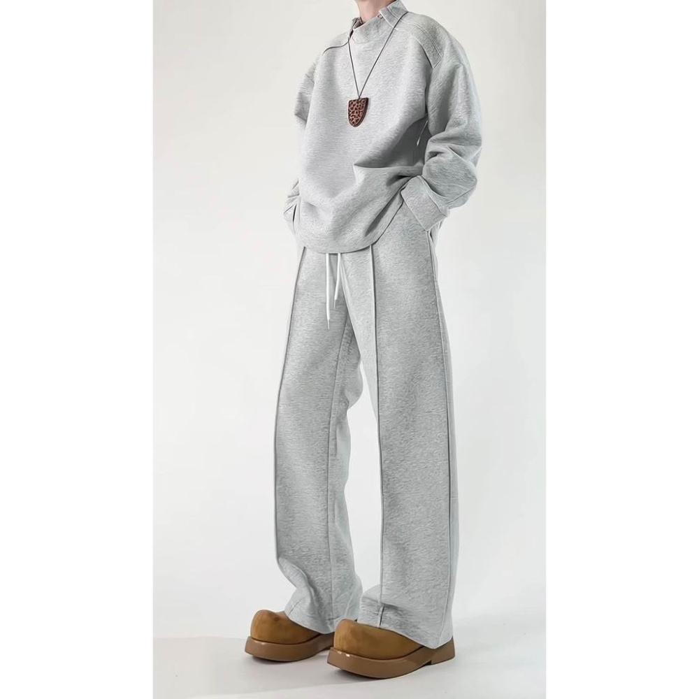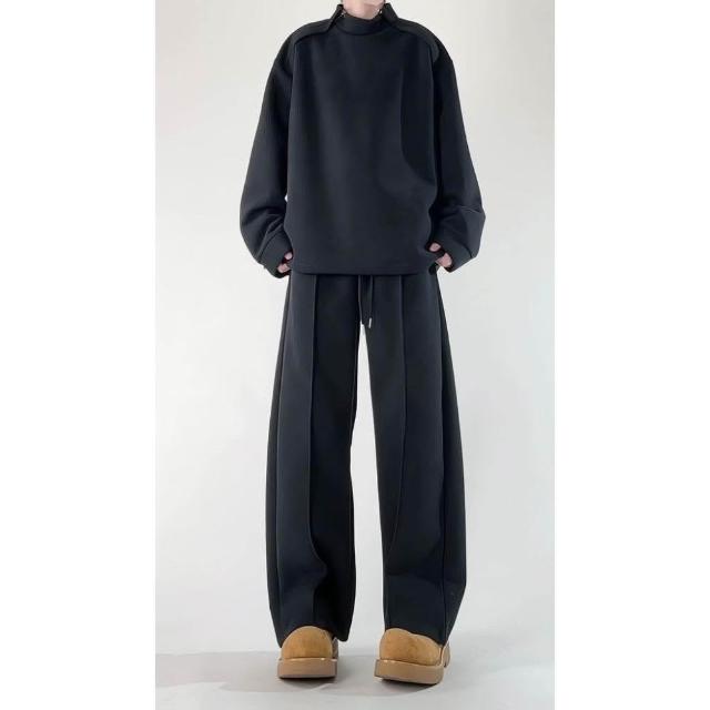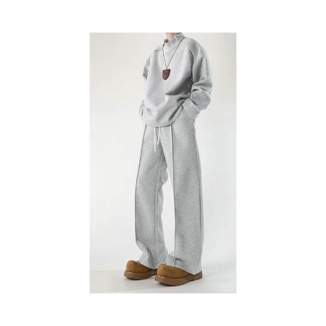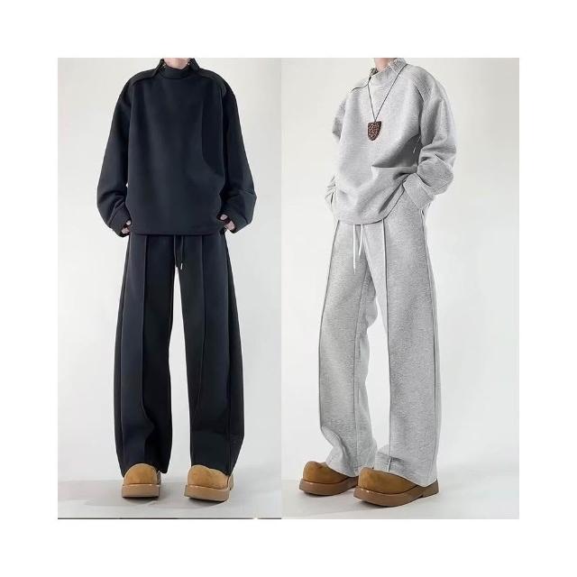 台灣免運慵懶風簡約寬鬆休閒運動套裝男側拉鍊圓領百搭上衣純色長褲一整套797