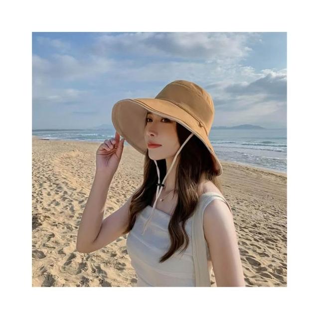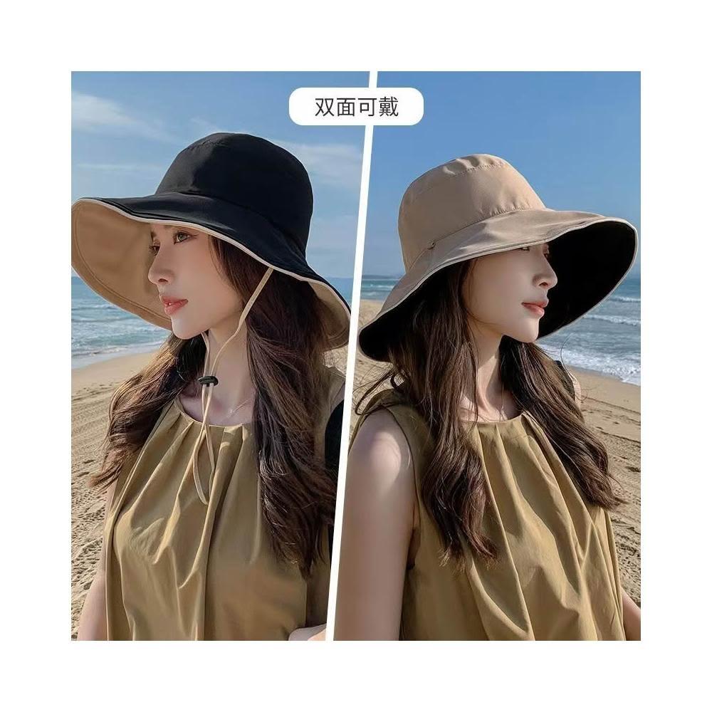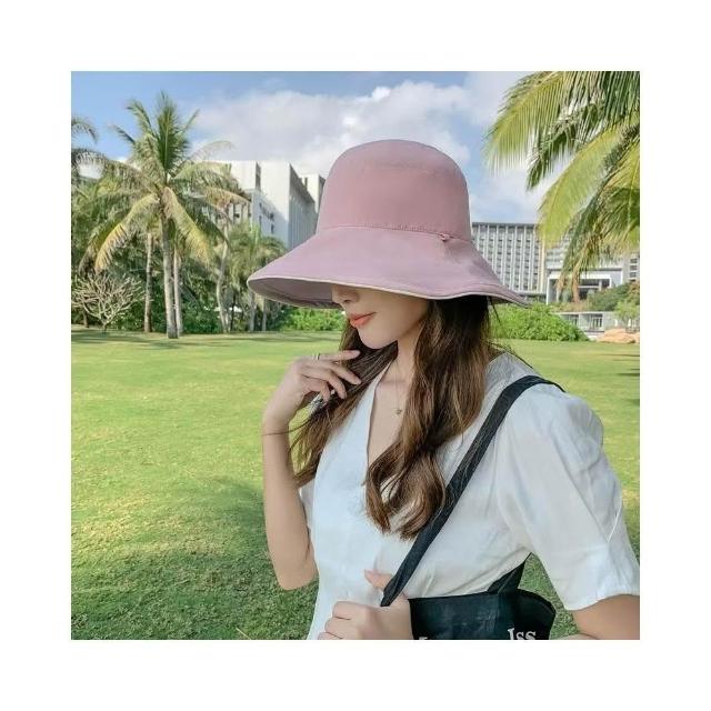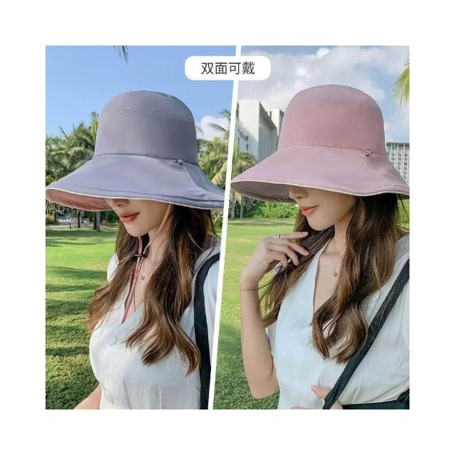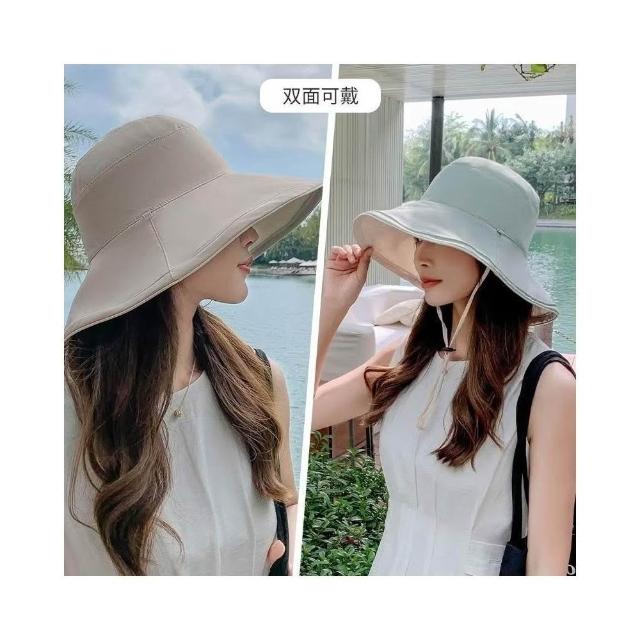 大檐雙面漁夫帽 顯臉小盆帽 女士帽 夏季防風帽 防曬帽 遮陽帽 防紫外線帽 寬檐帽 戶外登山帽 時尚百搭帽 素顏遮臉帽
