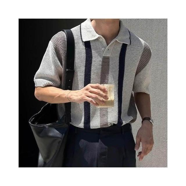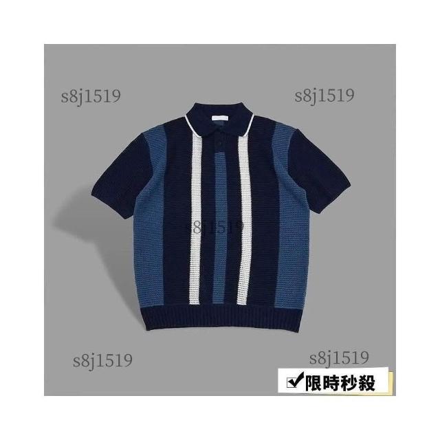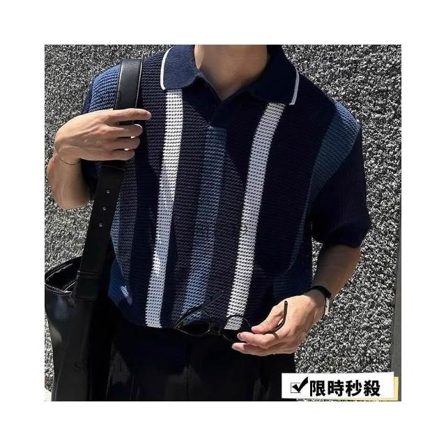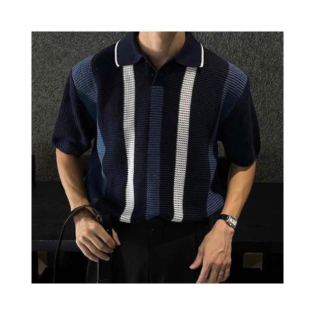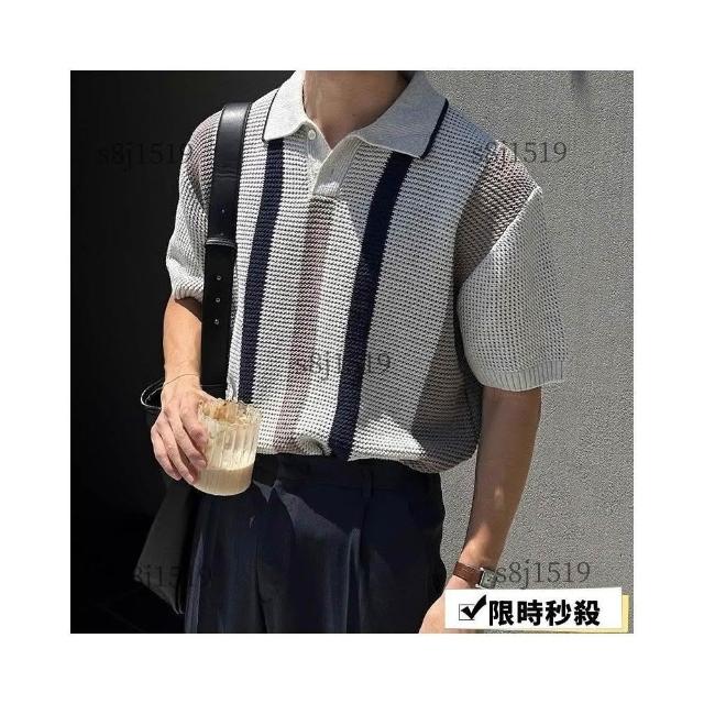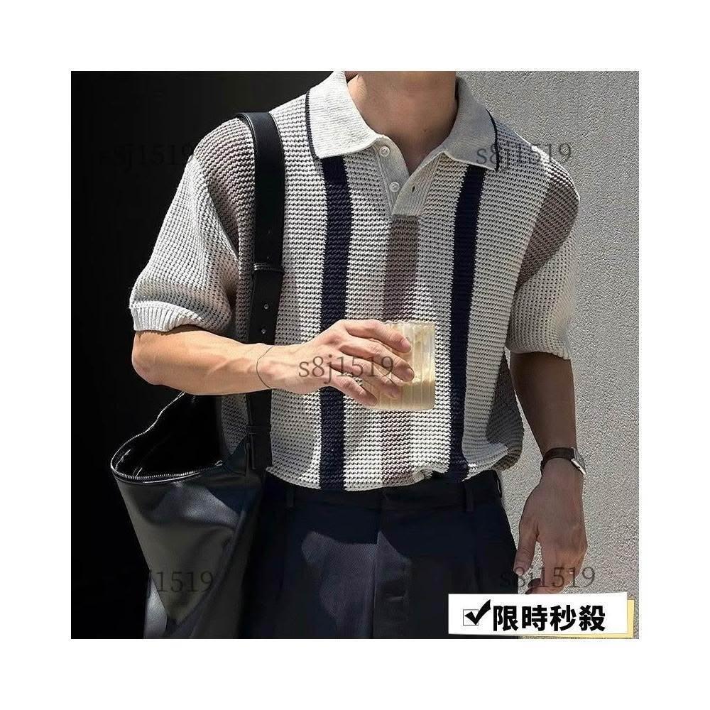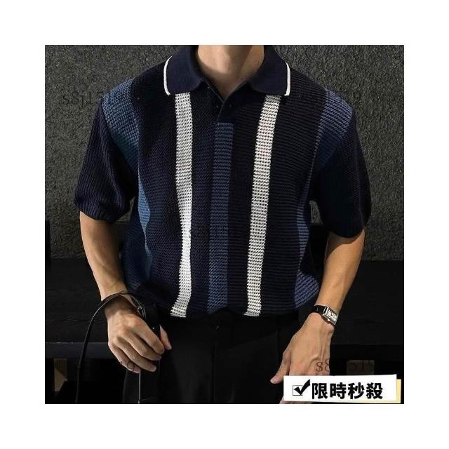 台灣免運男士短袖 翻領polo衫 【輕熟風】韓版潮牌條紋撞色輕熟風翻領短袖Polo衫男夏季設計感休閒針織T恤568