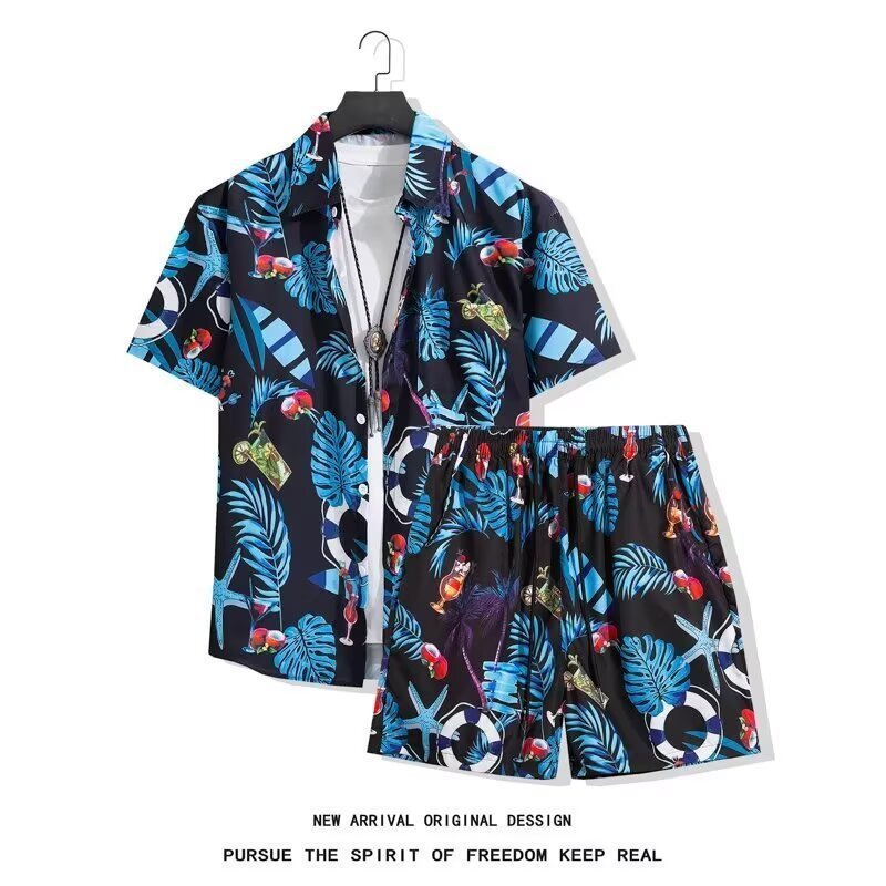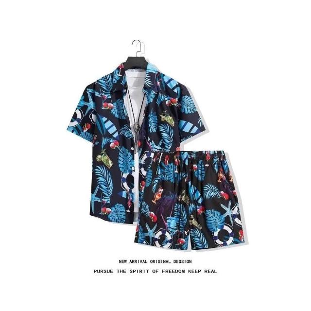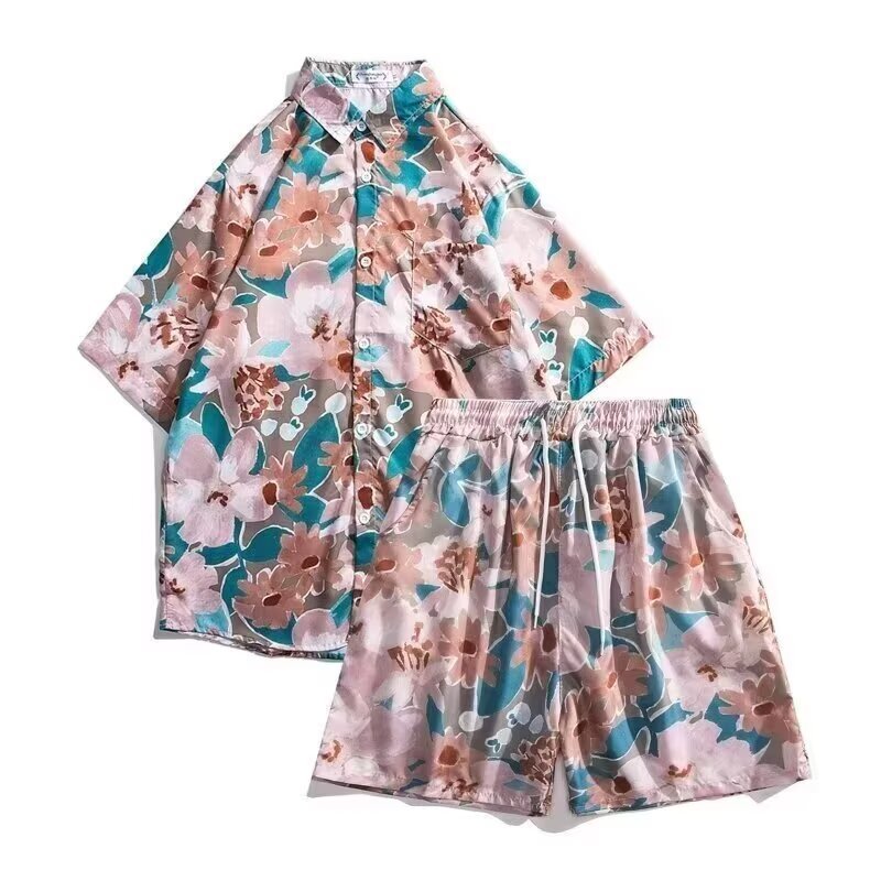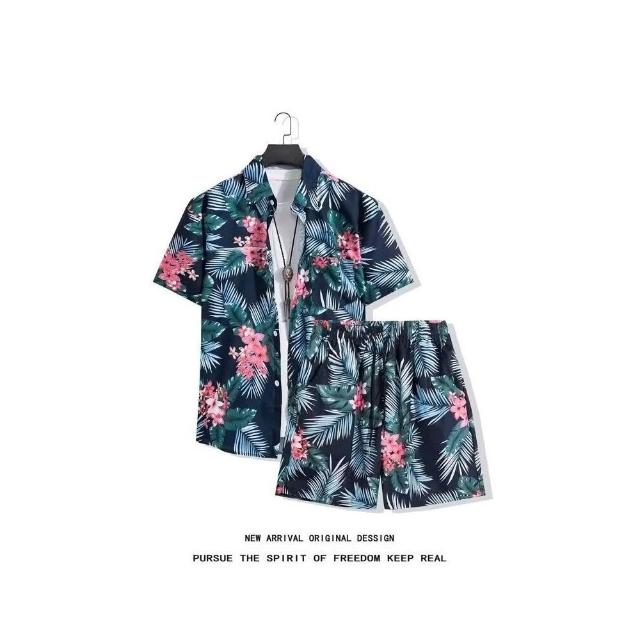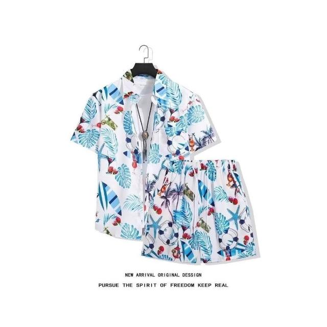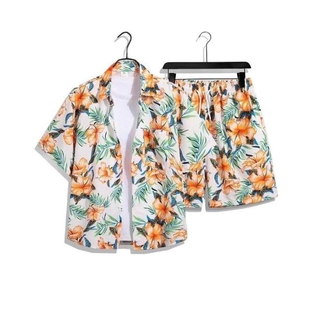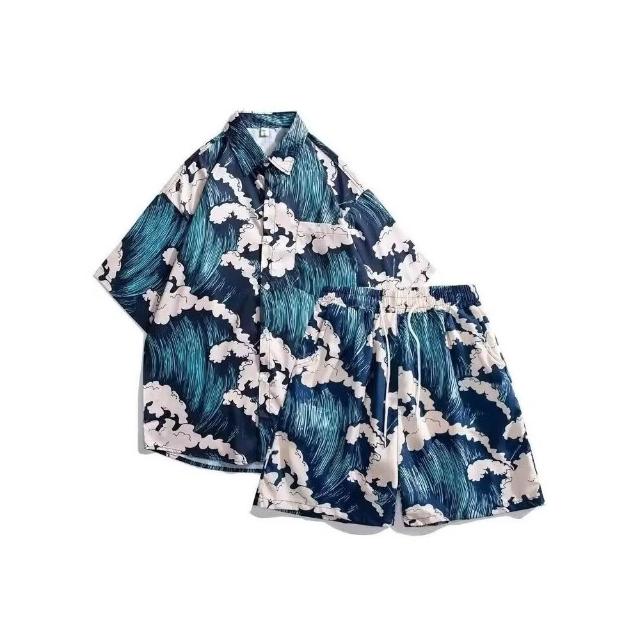 熱賣爆款 夏季花襯衫短袖短褲套裝男士休閒好看兩件套海邊沙灘度假寬鬆上衣