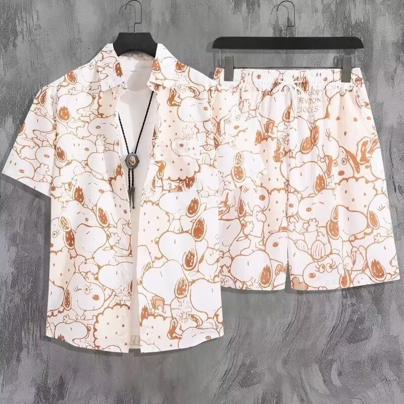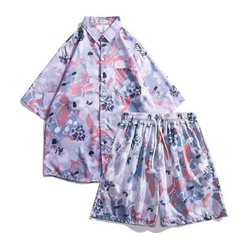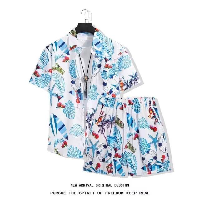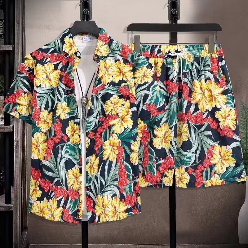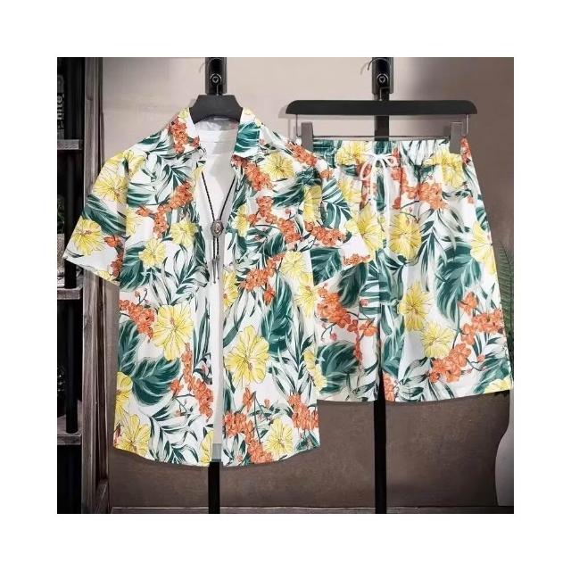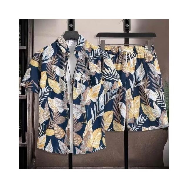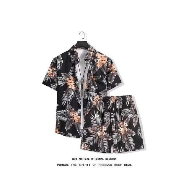 熱賣爆款 夏季花襯衫短袖短褲套裝男士休閒好看兩件套海邊沙灘度假寬鬆上衣