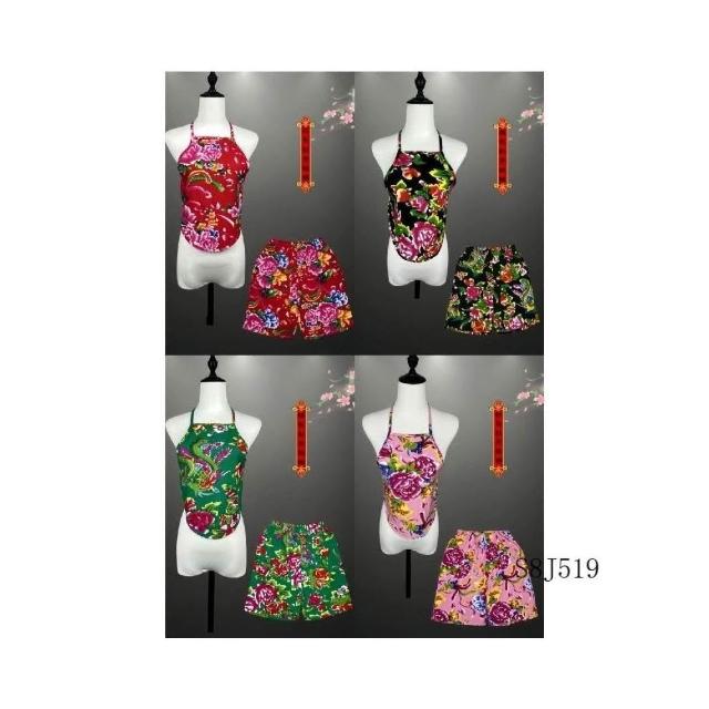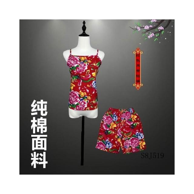 東北花布網紅短袖套裝搞笑二人轉伴郎男女搞怪伴娘演出服純棉肚兜